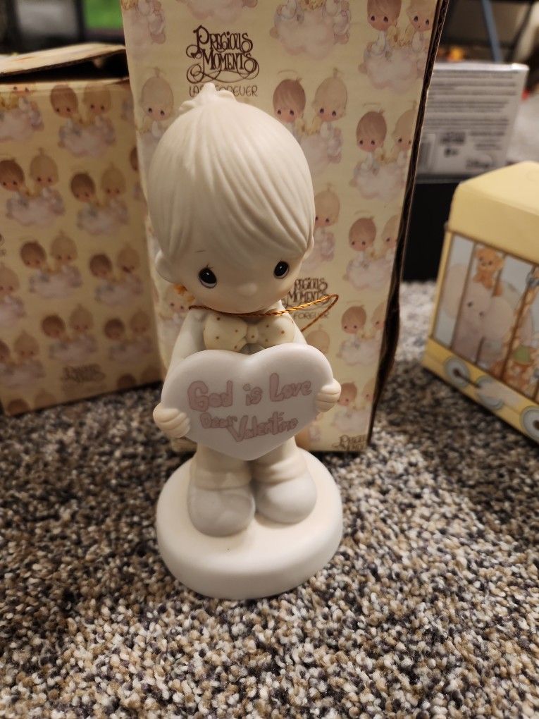 Precious Moments Enesco 1981 Boy Holding Heart God Is Love Dear Valentine W/Box