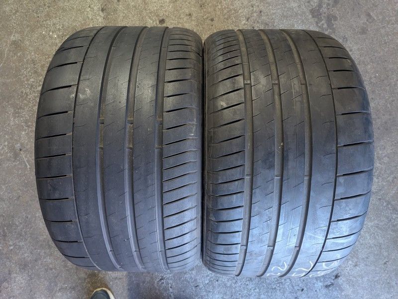 355/25ZRF22 (108Y ) BRIDGESTONE POTENZA L ( LAMBORGHINI ) PAIR OF TIRES 355 25 22 EXCELLENT CONDITION TREAD DEPTH 6/32" *Message us for more information. Whole sets and more available. Best deal for the world's best brand certified pre-owned tires in the market. Ideal for lease returns. We will match or beat any of our competitors prices. SATISFACTION GUARANTEED - DELIVERY UPON REQUEST!