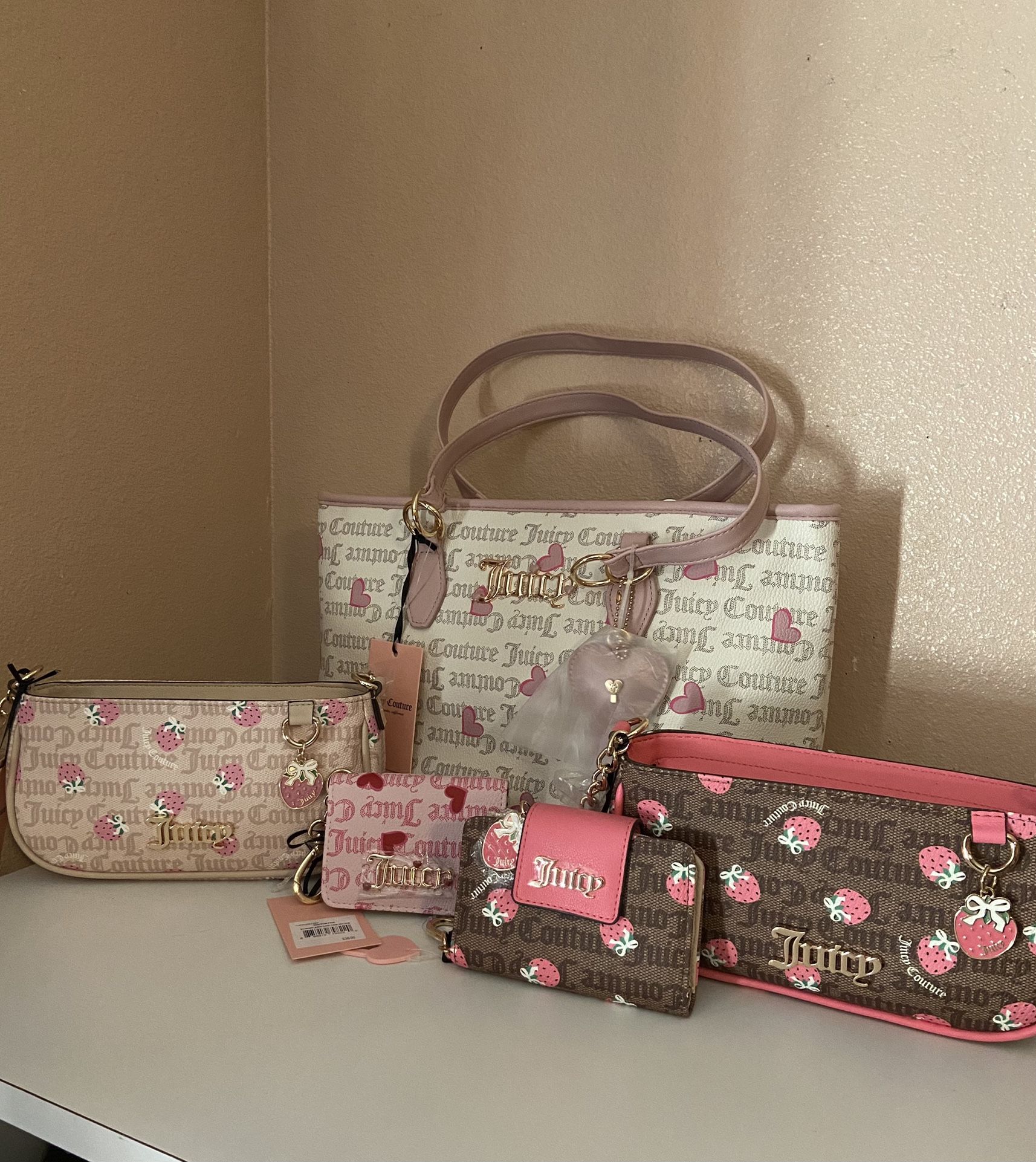Brand new bags! Heart tote bag- $60 Heart wallet- $20 Strawberry bag & wallet- $50 Strawberry bag- $40 (Pick up only!!) Around Logan Heights area If it’s up it’s available! Preferably cash but I accept Zelle as well :)