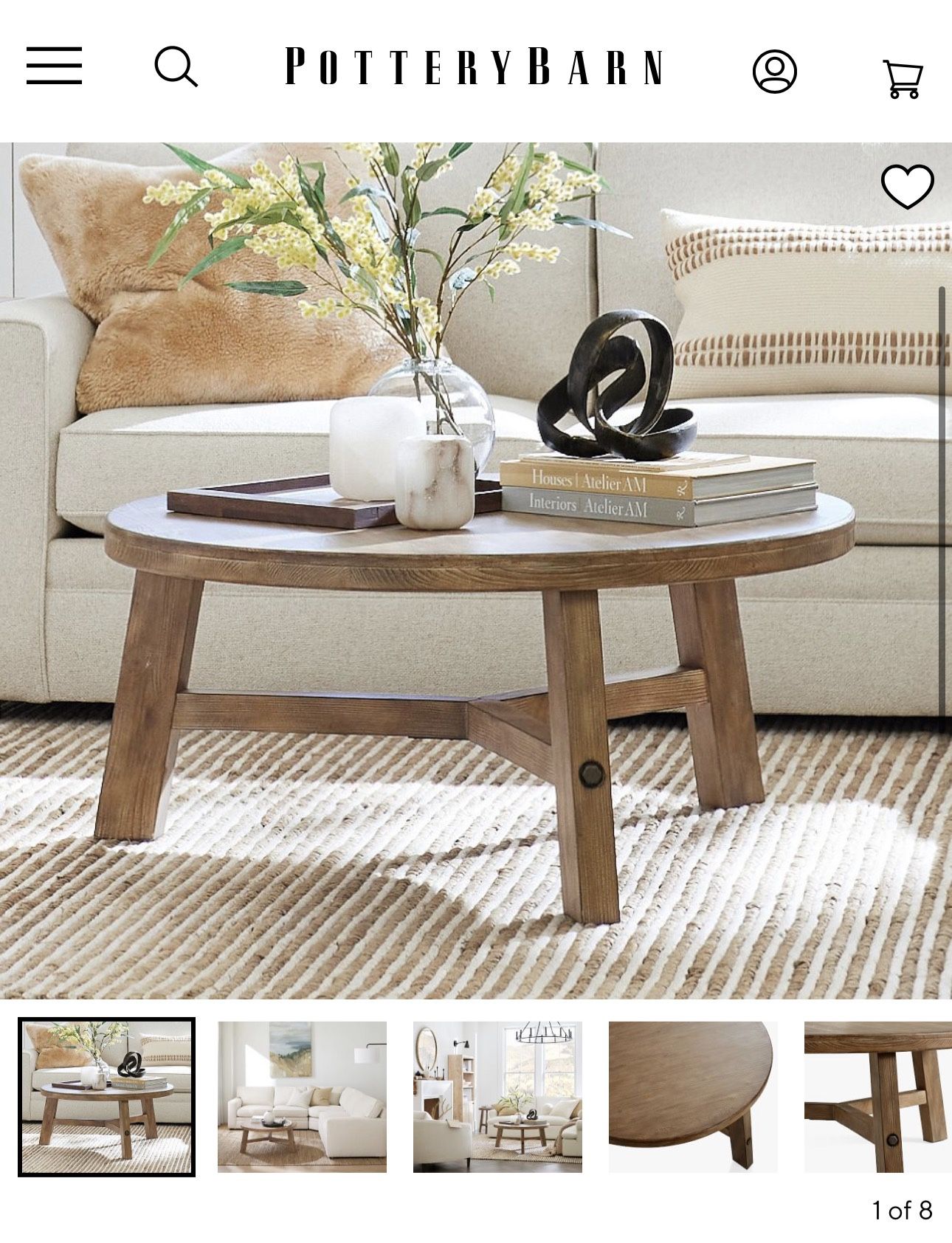 Pottery Barn round coffee table 44”. Beautiful table, excellent condition. $300. Serious inquiries only please.