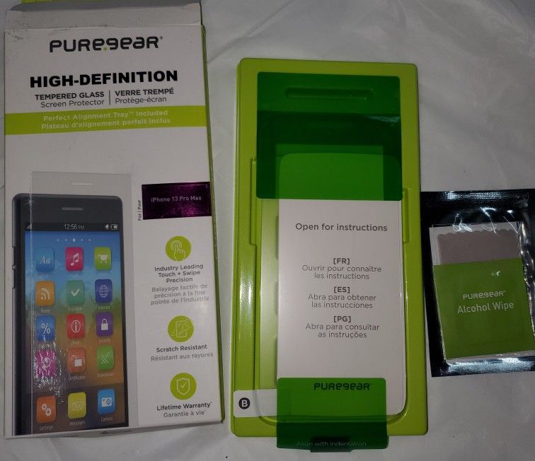 New/open box. PureGear high definition iPhone 13 pro max screen protector