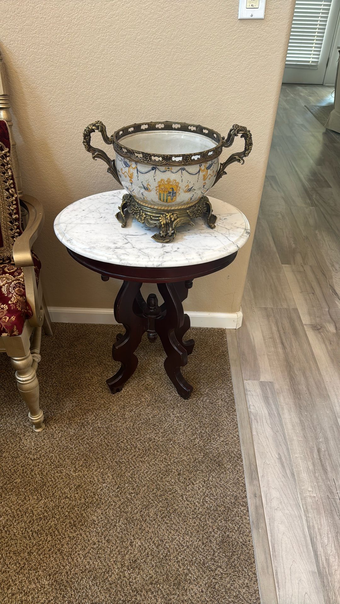 Victorian Style Wood And Italian Marble Side Table