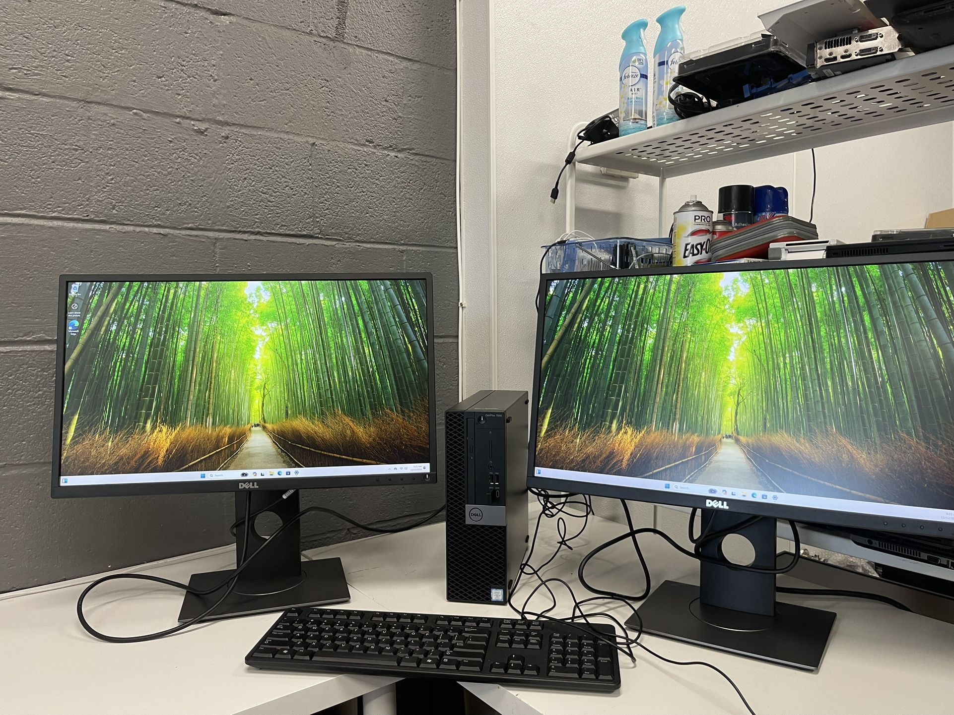 Comeplet Desktop Set with two 24” Dell monitors , Core i7 8th Gen, 16gb ram, 256gb SSD, 500gb HDD, Windows 11 Pro Installed, keyboard, Mouse, Mouse pad, USB WiFi Adapter , and cables the entire set for only $350