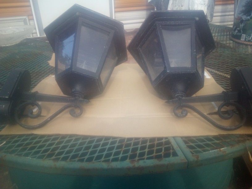 A pair of 6 paned lanterns Needs a fresh coat of paint 12" deep ; 20" high