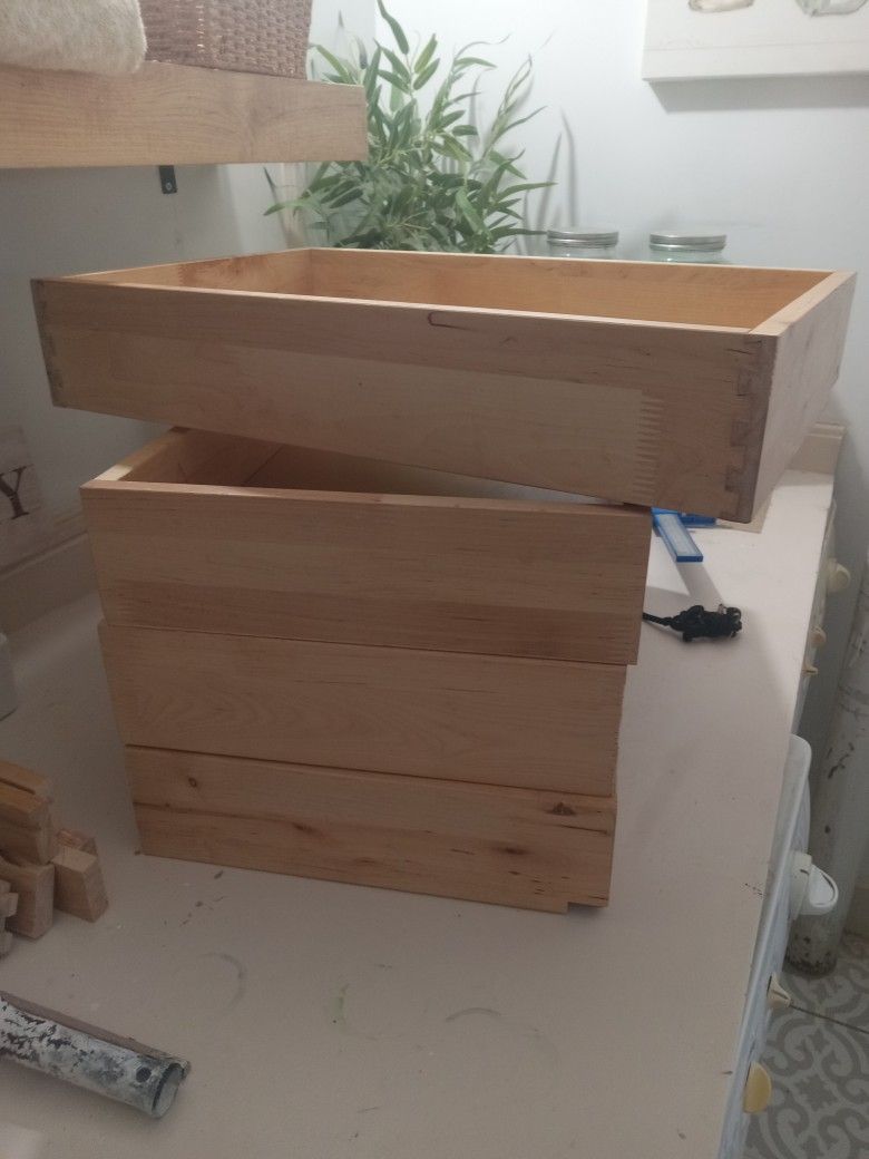 For any project drawers made of maple clear finish dovetail joint strong got some left overs I wS working on my kitchen I don't need them no more cheap price Size length 21 x13 3/8 For any rail slide I use undermount rail soft close