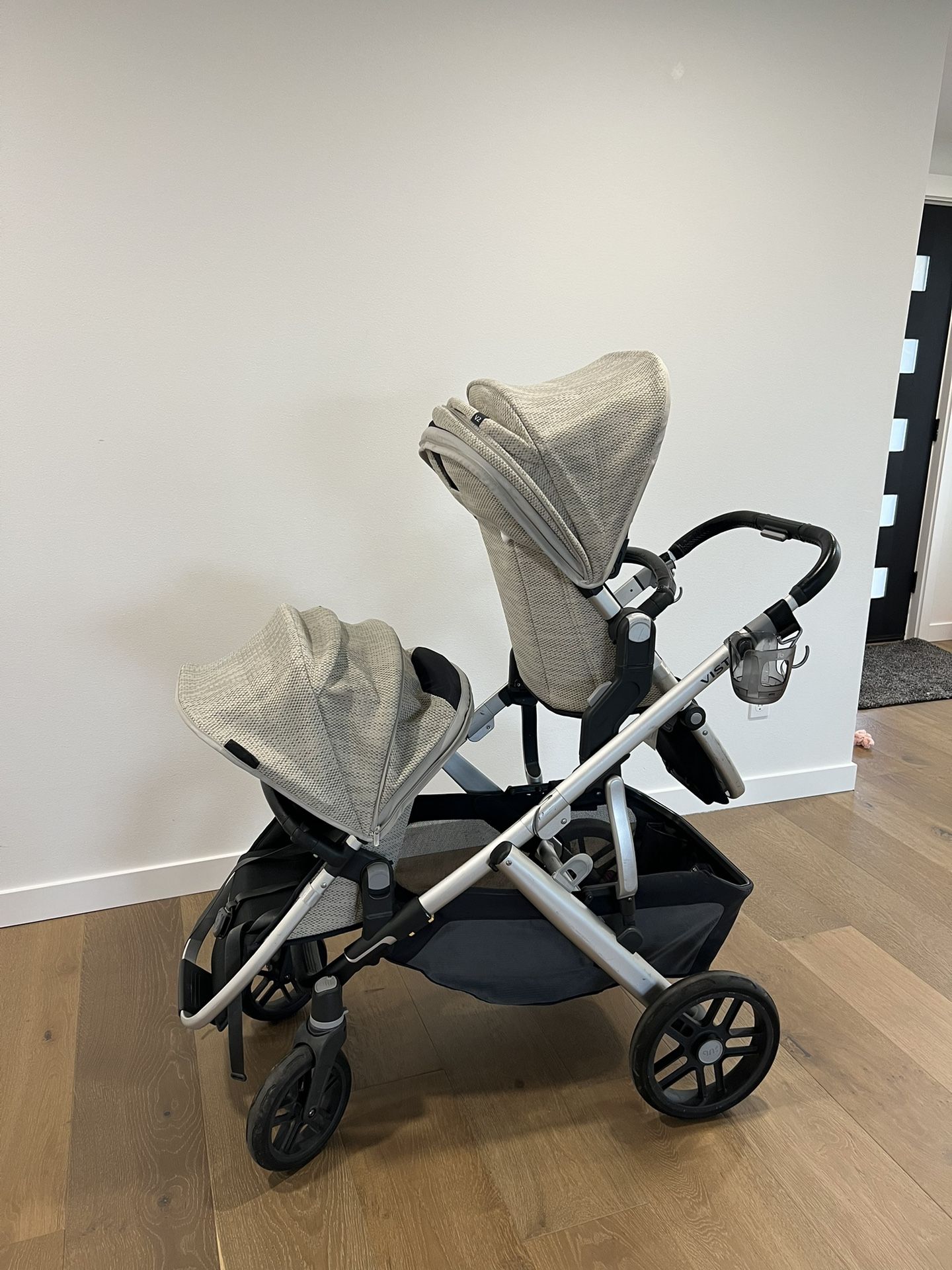 Comes with bassinet and cup holder and misc coverings