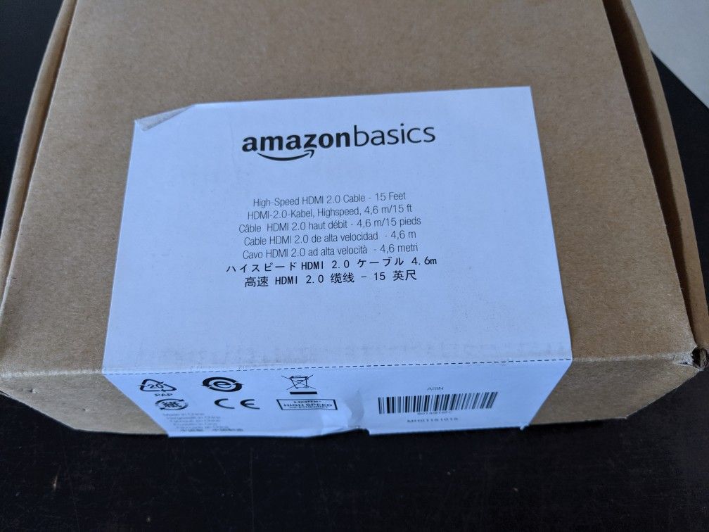 Like New! Retails for $11 on Amazon ({url removed}. Selling for $8. * HDMI A Male to A Male Cable: Supports Ethernet, 3D, 4K video and Audio Return Channel (ARC) * Connects Blu-ray players, Fire TV, Apple TV, PS4, PS3, XBox one, Xbox 360, computers and other HDMI-enabled devices to TVs, displays, A/V receivers and more * Cable allows you to share an Internet connection among multiple devices without the need for a separate Ethernet cable * Meets the latest HDMI standards (4K Video at 60 Hz, 2160p, 48 bit/px color depth) that supports bandwidth up to 18Gbps and backwards compatible with earlier versions * Cable Length: 15 feet (4.5 meters)