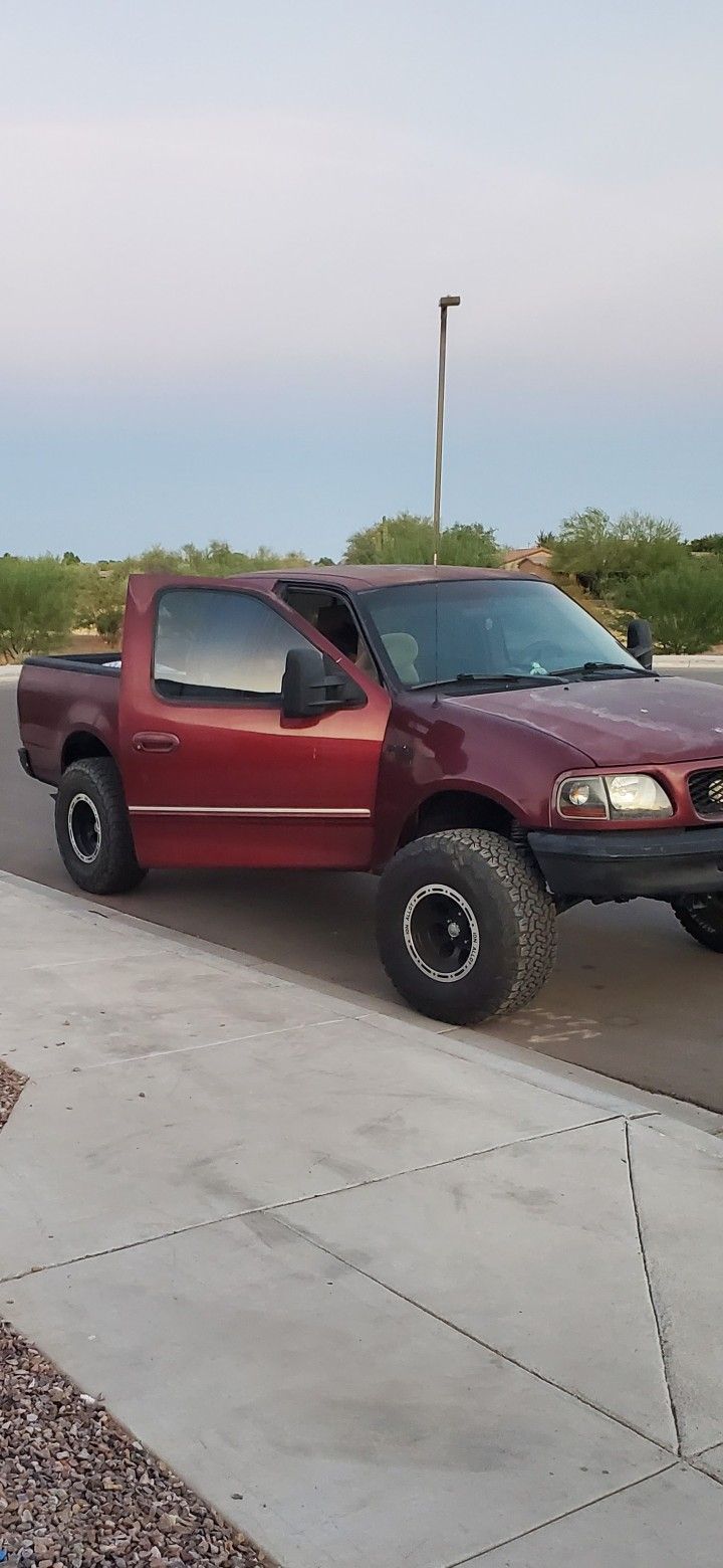Truck does not have title or registration, I lost them when I moved but I have the original bill of sale Tires are flatspotted and cant be driven on 98 f150 4.6 with 140k miles, truck runs and shifts great just needs new tires and registration. Has a CST front long travel kit, 3" lift blocks in the rear.