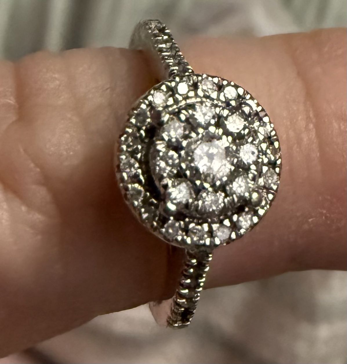 Size 3 10K White Gold Halo Engagement/Wedding Ring