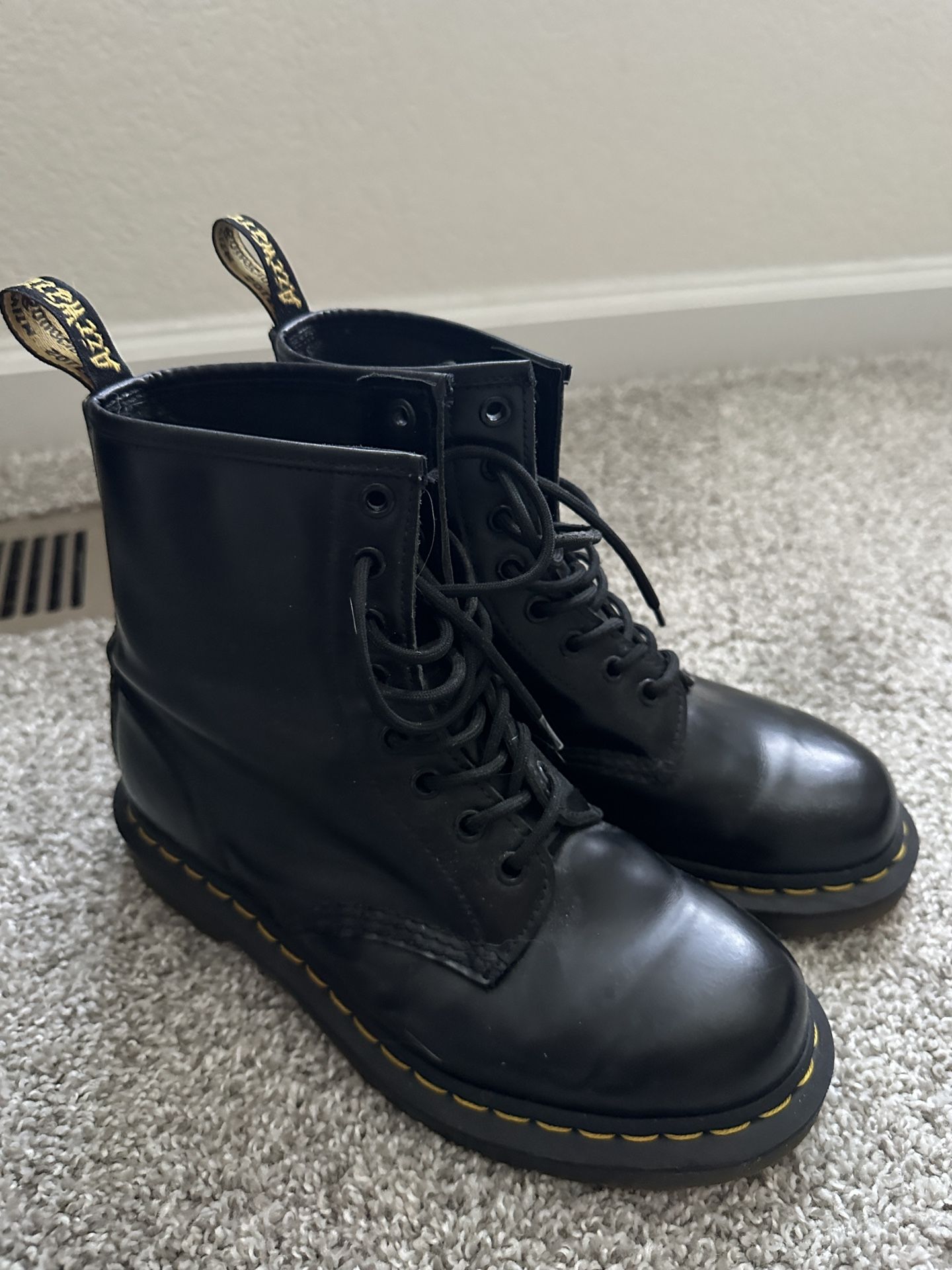Authentic Dr. Martens women’s boots in excellent, gently used condition. Worn carefully and well maintained — no scratches, no damage, soles in great shape. Size details (as marked): • US Women’s 6 (Medium) • US Women’s 7 (Wide) • UK 5 • EU 38 Classic Dr. Martens quality: durable leather, comfortable fit after break-in, and timeless style that works with jeans, dresses, or casual outfits. From a clean, smoke-free home. Ready to wear.