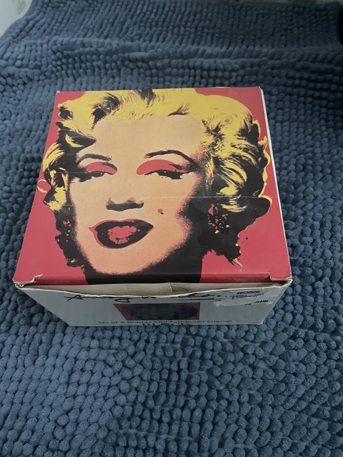 Marilyn Monroe glass cups by Andy Warhol , never used just open