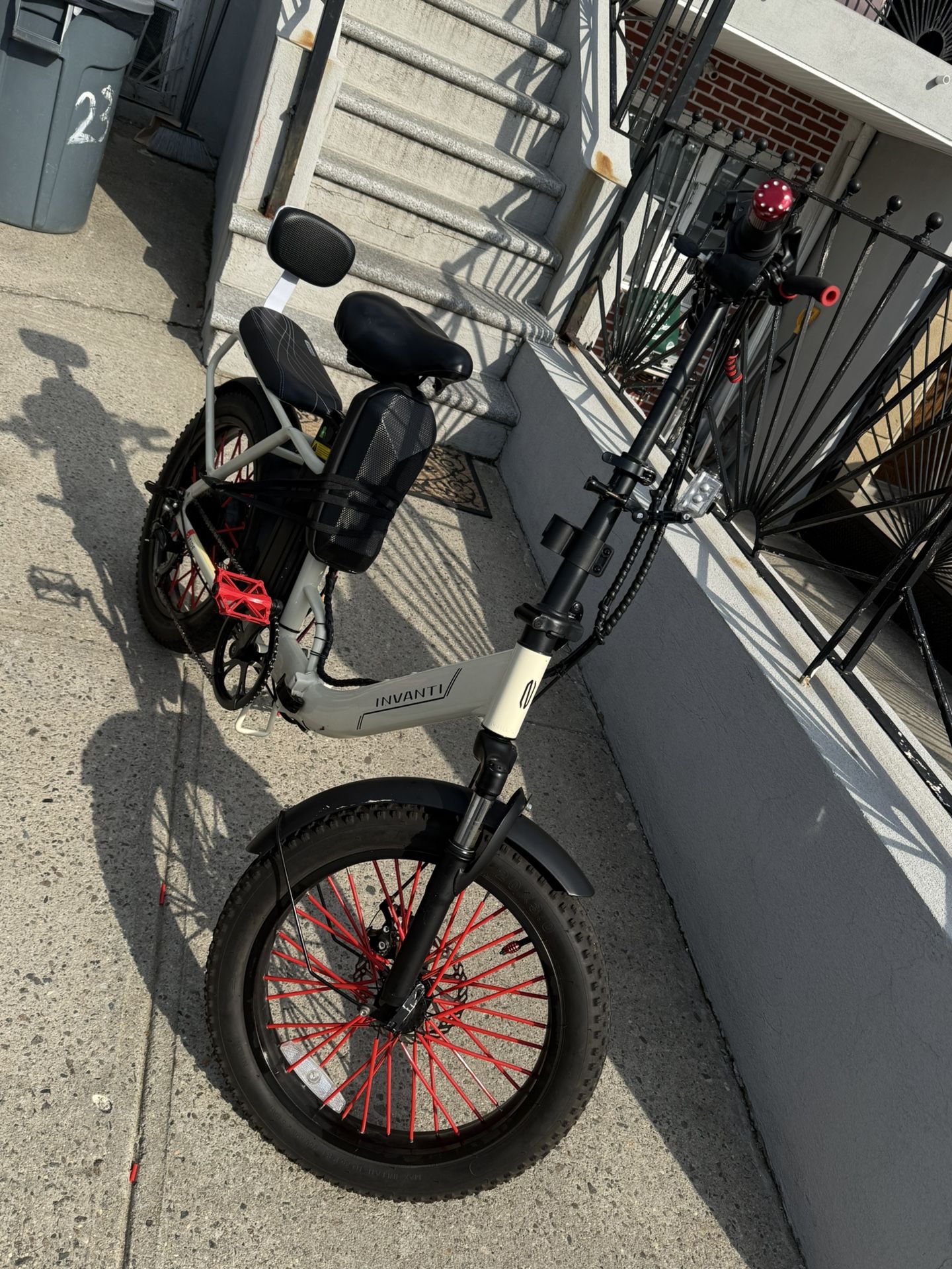 Se vende bicicleta eléctrica marca Invanti en muy buen estado. Ideal para transporte diario, trabajo o paseos. Es rápida, cómoda y fácil de manejar. Características: • ⚡ Motor eléctrico potente de 500w • 🔋 Batería recargable de larga distancia y duración 48v 13Ah • 📱 Pantalla digital que muestra velocidad, batería y nivel de asistencia • 🚲 Llantas anchas 20x3.0 para mayor estabilidad • 🛑 Frenos de disco para mejor seguridad • 🪑 Asiento cómodo con respaldo para pasajero • 🔑 Encendido con llave • 📱 Soporte para celular en el manubrio La bicicleta funciona perfectamente y está lista para usar. Perfecta para moverse por la ciudad sin gastar gasolina y corre a 27MPH y el bolsitos negro es donde está el controlador que es un bolso a prueba de agua y tienes sólo 234millas recorridas si tiene alguna pregunta, me dejas saber