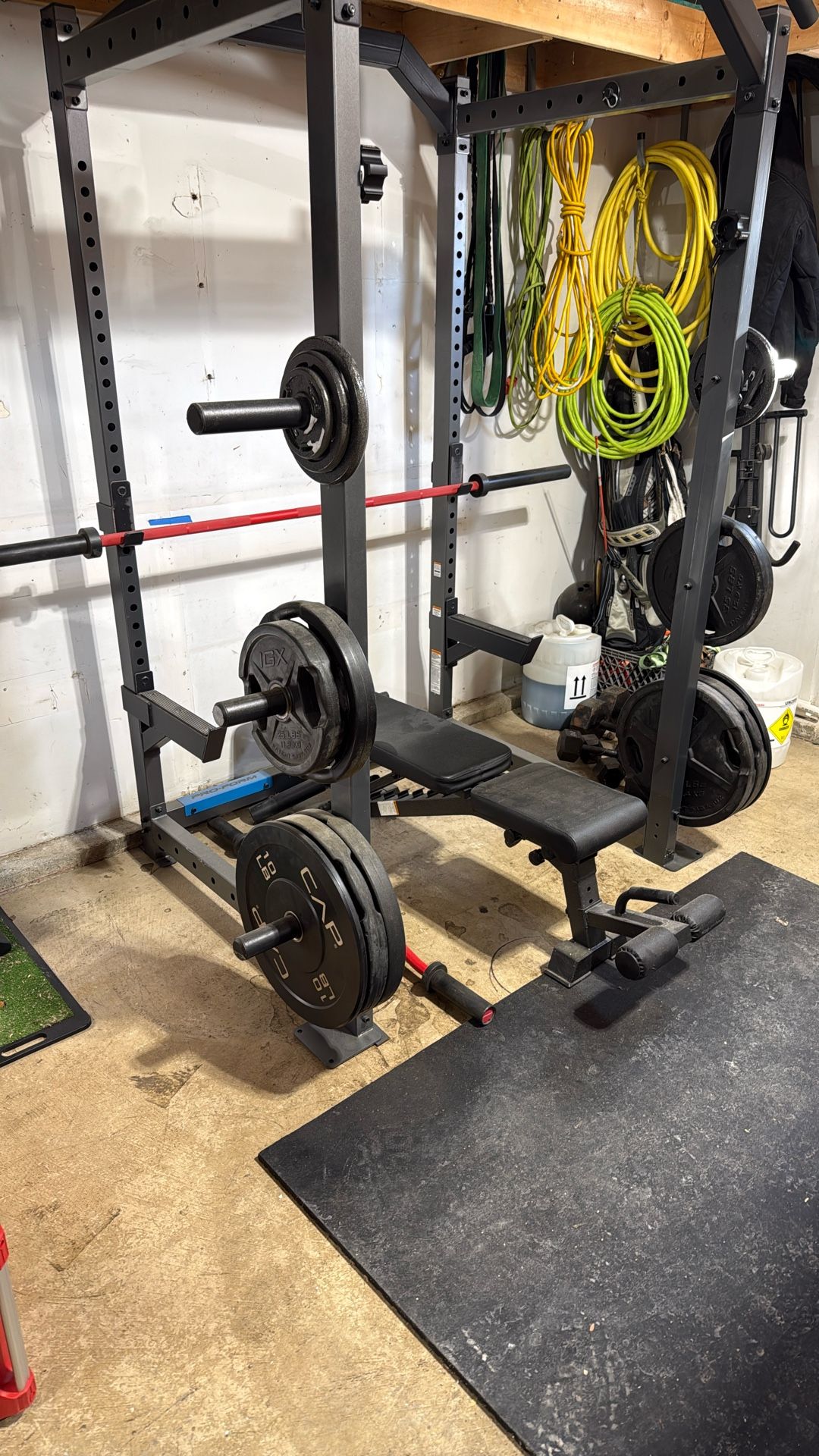 Rogue bar with collars (those alone retail for $400) 4-45 2-35 2-25 2-10 2-5 2-2.5 Curl bar Adjustable bench
