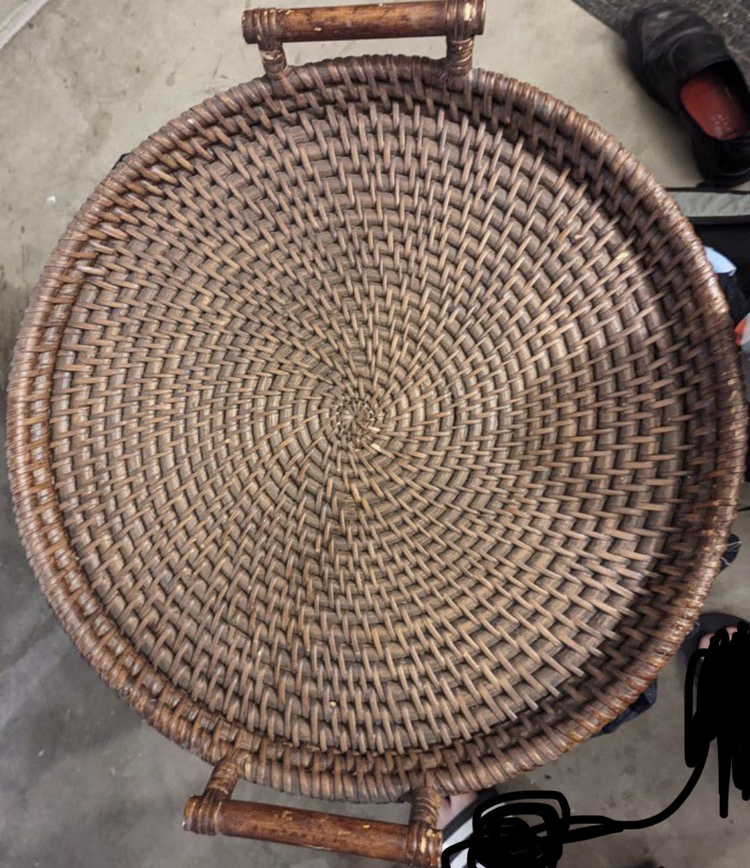 Dark Brown Wicker Tray, in good condition about 20” wide