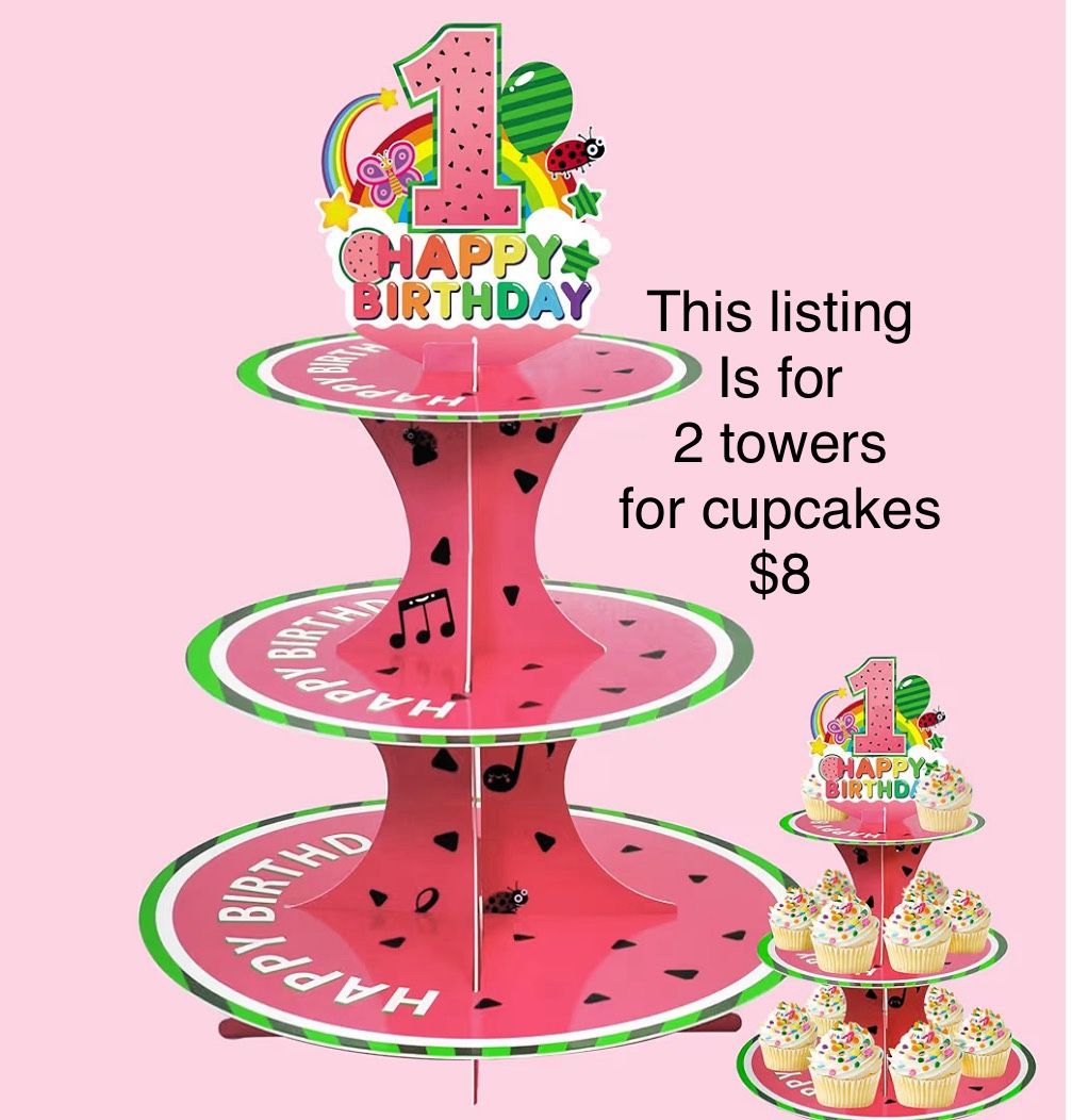 This listing is for 2 brand new 3 tier cupcake stands. It is cardboard and easy to assemble and take apart. Se habla español Pick up in Azusa. Se recoje en Azusa Zelle, Venmo , Apple Pay,💲app Shipping Availability message me for pricing Start at $7 thru post office