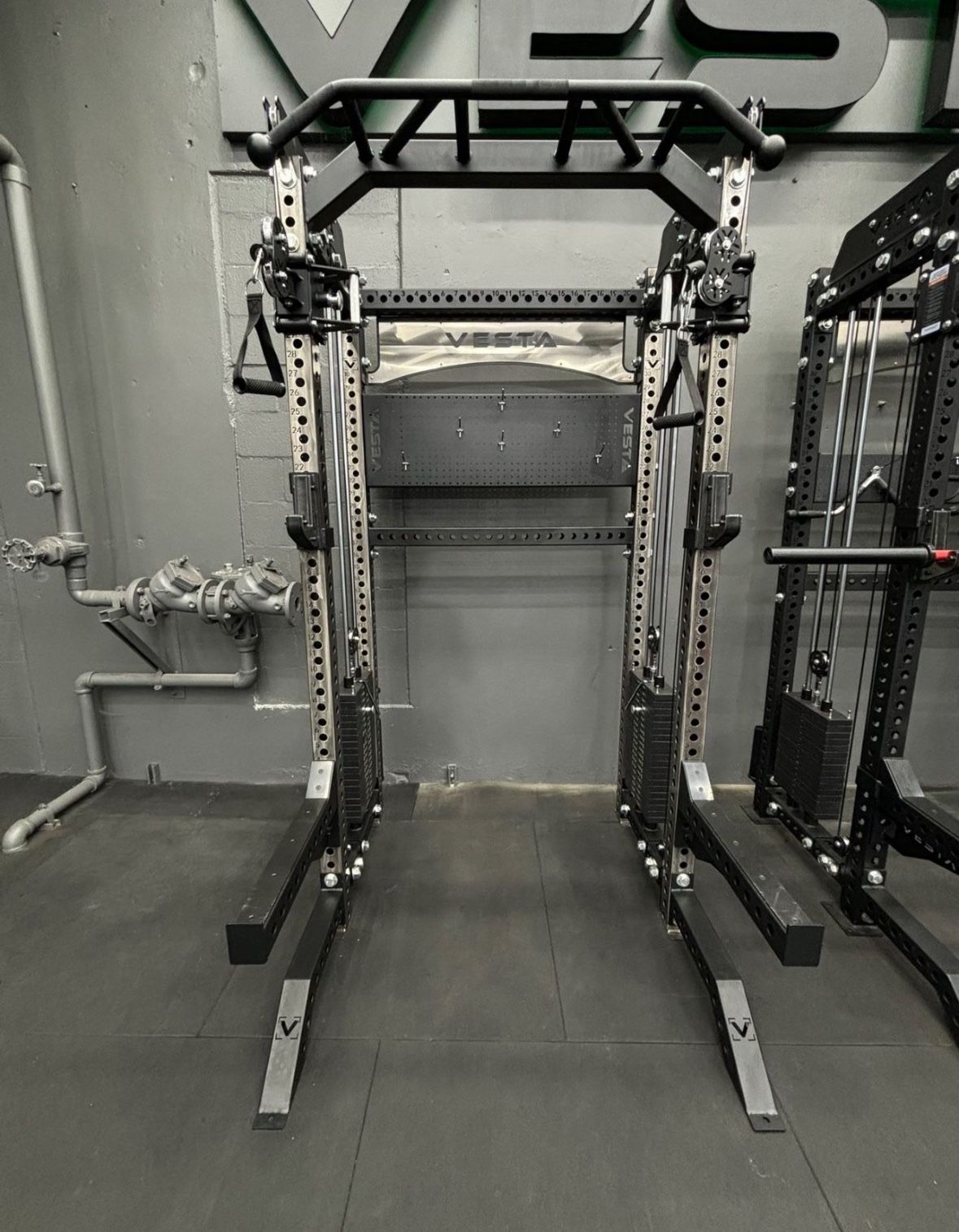 Accessories Included Two (2) Spotter Arms Two (2) J-Cups Two (2) D-Grip handles One (1) Vertical Barbell Holder One (1) Pull-Up Bar (Two (2) different pull-up variations) One (1) Crossmember Two (2) Front Foot Extensions Peg Board/Accessories Board (for the 200 lb weight stack model only) Specifications 2:1 Cable Pulley Ratio Each cable can lift a total of 400 lb (160 lb OR 200 Ib weight stack + 200 lb weight plates added to the Weight Extender Pin), totaling to either 360 1b OR 400lb) 33 height settings Adjustable cable functional trainer Upright constructed of 3"x3" frame (75mm x 75mm), 11-gauge steel, and laser-cut numbering with 1" holes Exterior rack dimensions: 49" Wide x 28" Deep x 94" High (Note: when Front Foot Extensions are added, then the total depth is 50" Deep) Front Foot Extensions: 22" Long Interior rack dimensions: 43" Wide × 25" Deep Crossmember: 42.25" Wide Premium Aluminum Pulley Wheels Commercial-grade cables Hardware included Warranty Commercial Grade Lifetime Warranty on frame