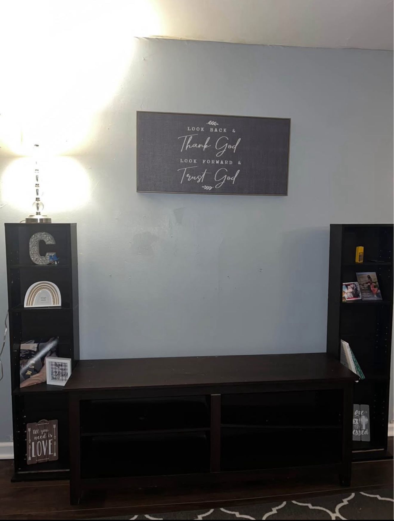 Entertainment center and side bookshelves for sale. Can deliver for extra $15. moving and can’t be taken with so must go