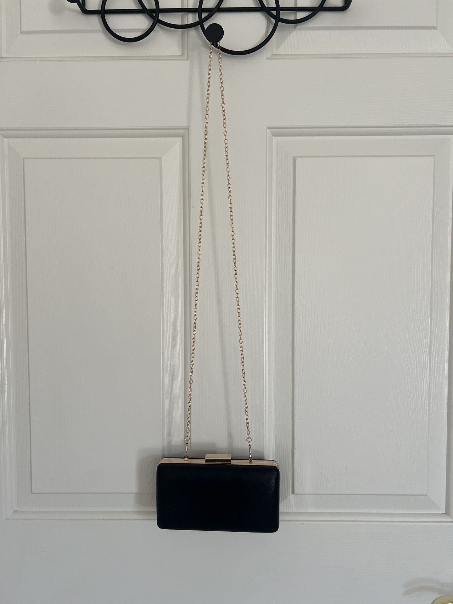 Beautiful Elegant Clutch Purse Gold Trimmed with sturdy snap buckle Long Gold Strap to use as shoulder/crossbody Silky soft interior Strap can be removed to be used as Clutch Perfect to go with any evening/ special occasion Great Condition- Very well taken care of Only used once for a company Gala Event No Rips, No Stains, Very Clean ****PICK UP ONLY*** Clearing out Closet
