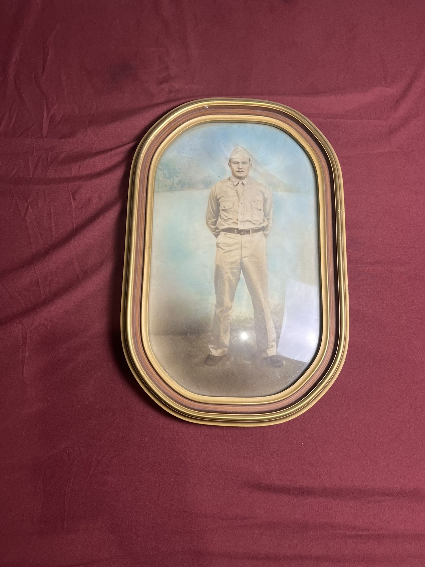 Vintage military portrait in bubble glass frame /antique WWII Soldier