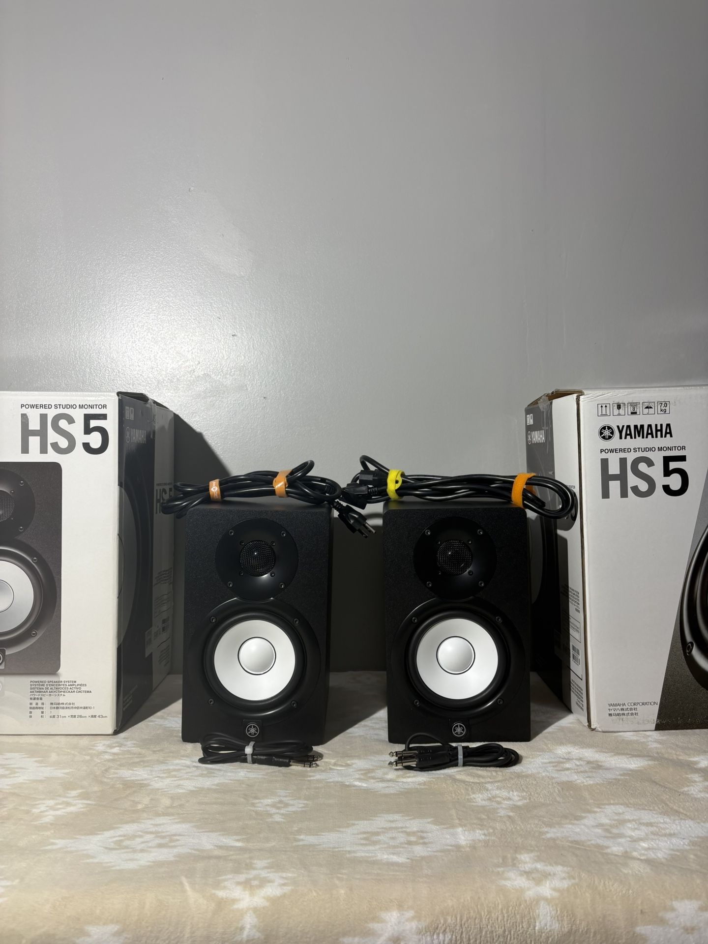 Yamaha hs5 studio monitor in new condition comes with cords and TRS cables ready to plug in and play (If any questions feel free to ask ) (open for trades)