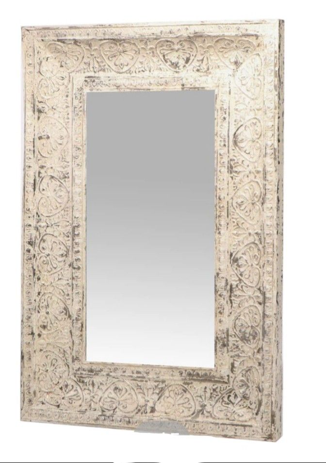 Large Pressed Tin Mirror with Distressed Finish, has nicks and scuffs consistent with age; dent to one side. Dimensions: 48.0" W x 72.0" H x 4.0" D Thx for looking.