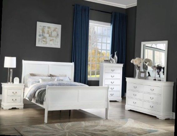 Usamexicofurniture 5467 Moreno st Montclair Queen bed frame. Dresser Mirror One nightstand Visit us to see in person Free local delivery Assembly required $29 Low inventory 2 days after order Colors White. Grey. Cherry and black Add Chest for $287 Change size for king $100 more Mattresses queen set $299 and up Visit us. Thanks