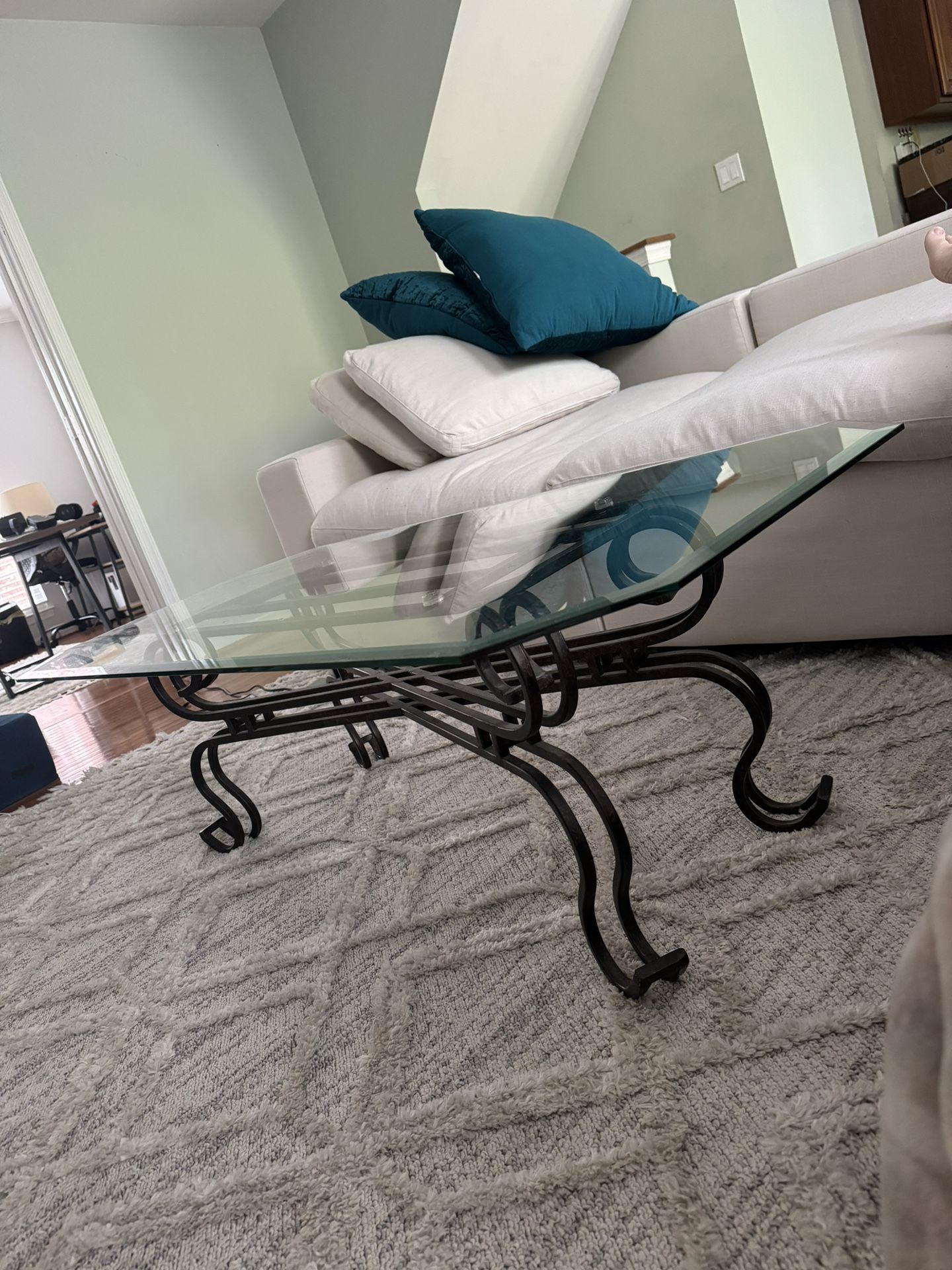 coffee table Beveled Glass top and metal frame 51Lx21Wx15.5H Great condition $80 Cash only, no app payments Woodbridge Pickup Serious inquiries only Communication via offer up app