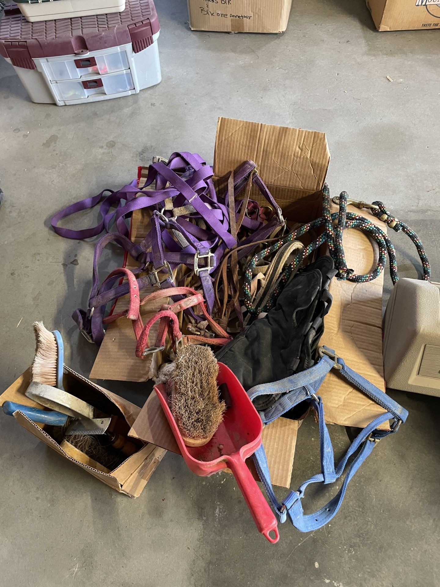 Bridles , lead ropes, brushes, combs ect