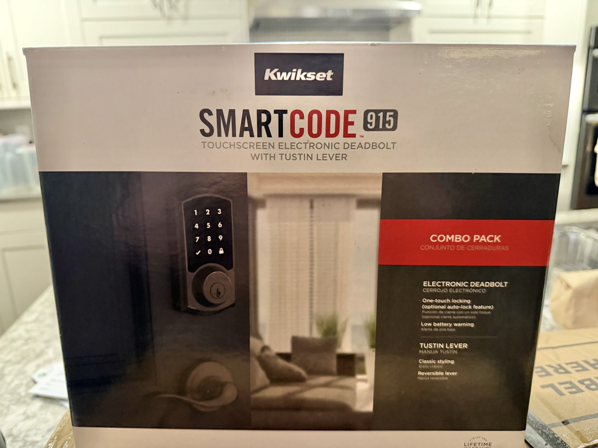 Kwikset SmartCode 915 Touchscreen Electronic Deadbolt with Tustin Lever combo pac
