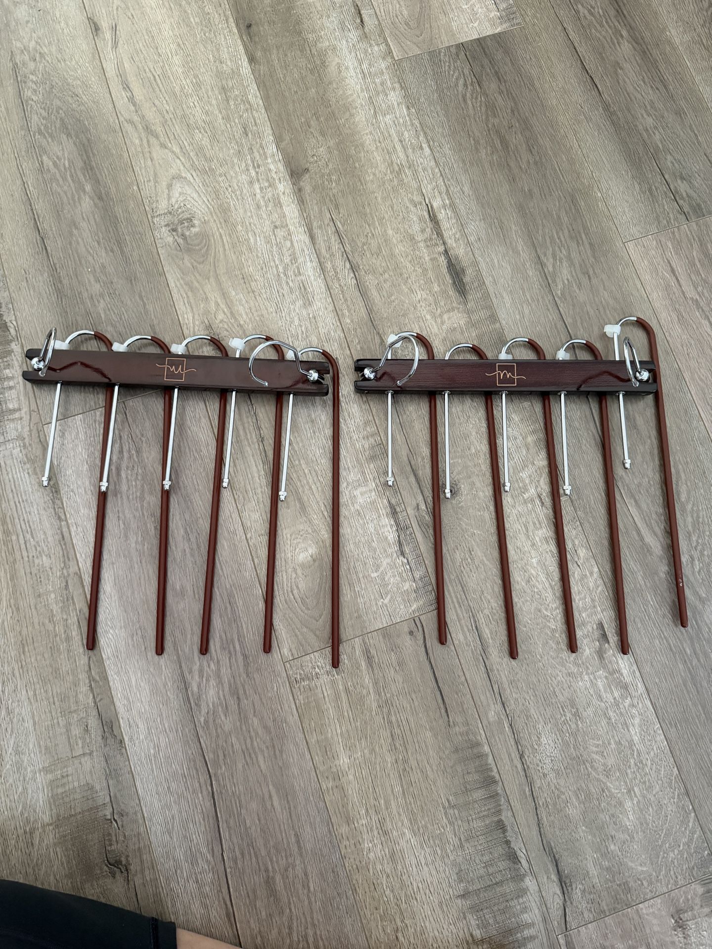 2 pack Space-saving hanger with multiple layers for organizing pants. Closet Organizer and Space Saver Pant Rack, Leggings Hanger, and Scarf Holder with 360° Swivel Hook