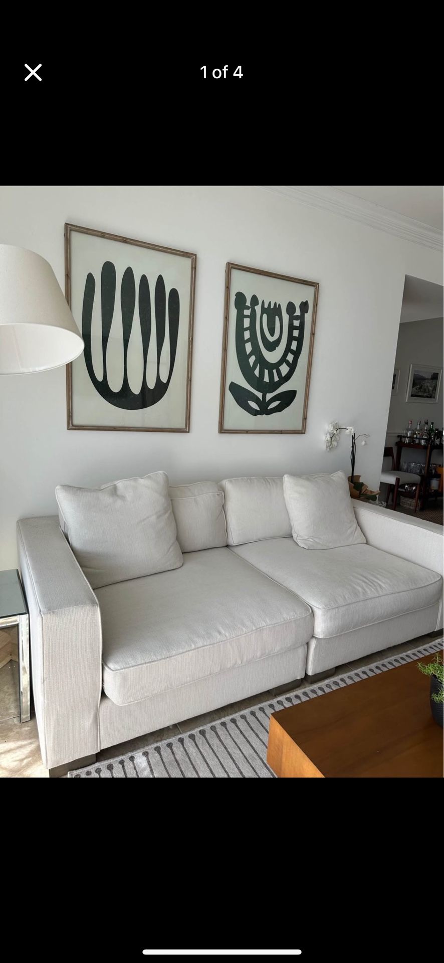 Mild stains that can be easily washed. 85in x 42in. Comes with all white pillows pictured.