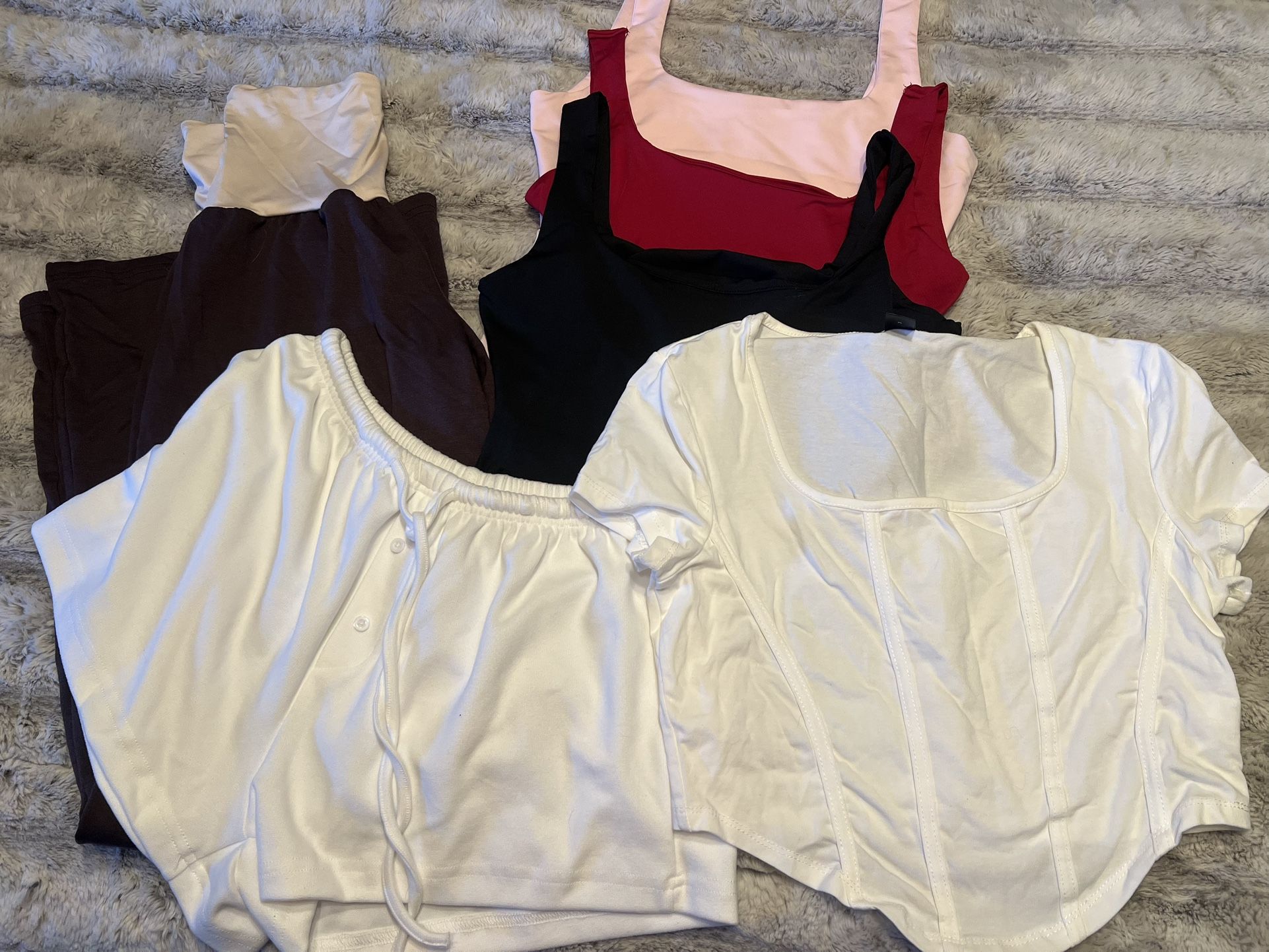 🤝🏼MAKE BEST OFFER Collection of women's tops/bottoms in various colors and styles. BRAND NEW. $4 each item/$20for all. 6 shirt(small) 1 shorts(small) 1 brown pants(small) OBO 75th Ave and Union Hills Can also meet at 32nd St & Beardsley