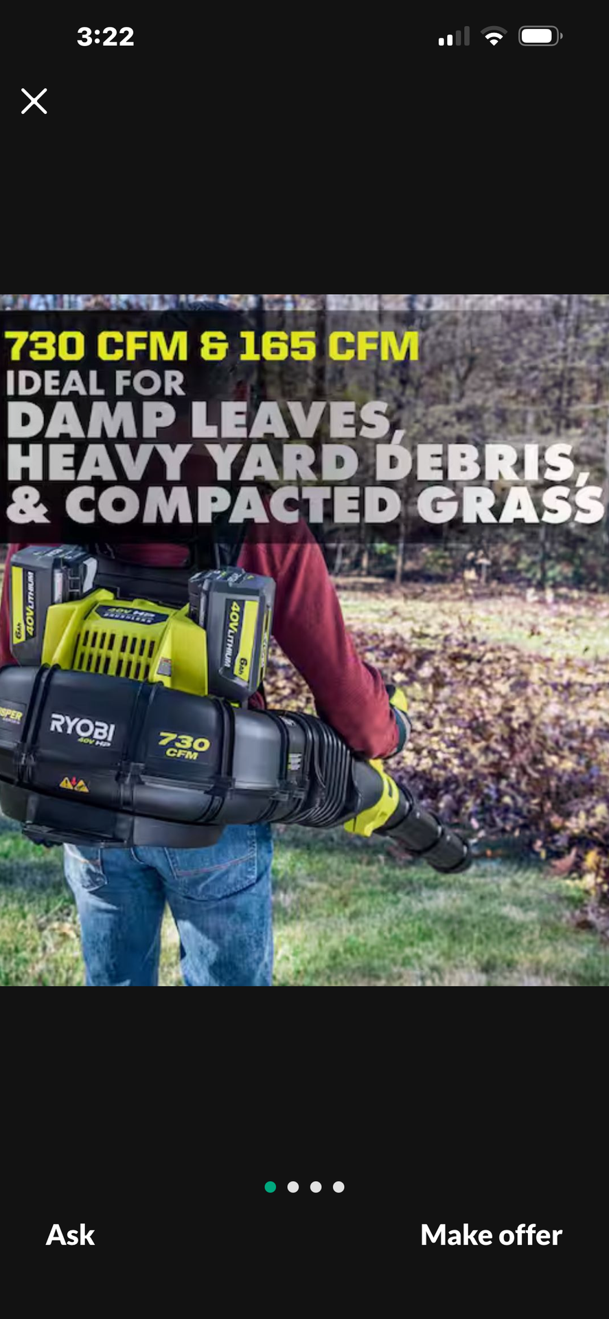 Brand new Ryobi 40v Hp Brushless Whisper Series Backpack Blower With Batteries And Charger ($260)