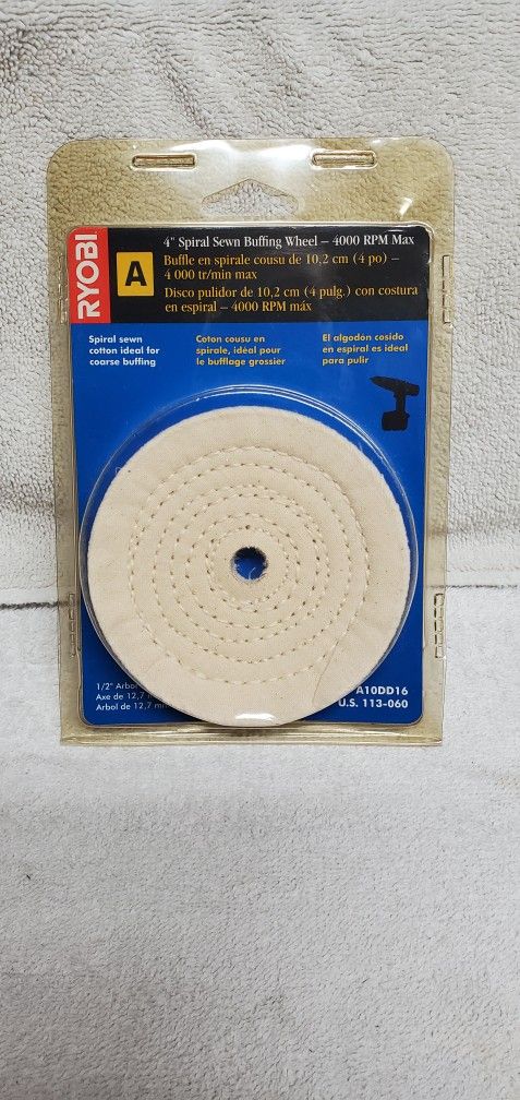 Ryobi A10DD16 4" Spiral Sewn Buffing Wheel 1/2" Arbor. Spiral sewn cotton ideal for buffing.