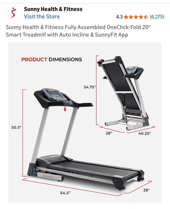 Like new - smart treadmill $400 OBO 12 levels, auto incline. Maximum incline: 12 % Speed range: 8 mph Horsepower: 2.2 HP Currently listed over $500 @Walmart online. Has wheels & folds. You will need to load. Cross-posted. First come, first dibs - no holds unless paid for.