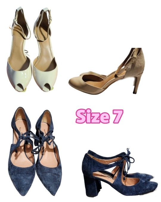 Each pair in excellent condition Size 7/38 Beige Calvin Kleins - $10 Navy suede pumps Gloria Ortiz- $10