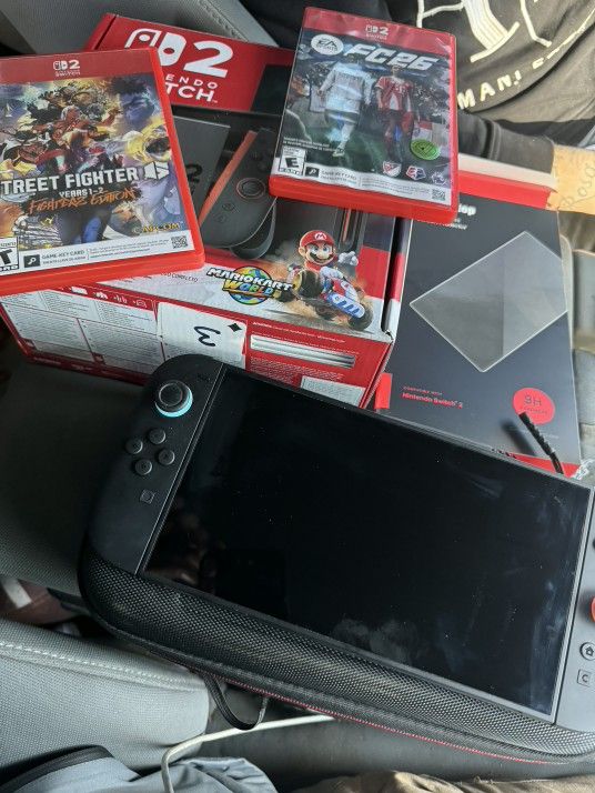 Mario cart edition neitendo switch 2 comes with the new fc26 and new street fighter also SD card and screen protector and the case to store you may test before buying