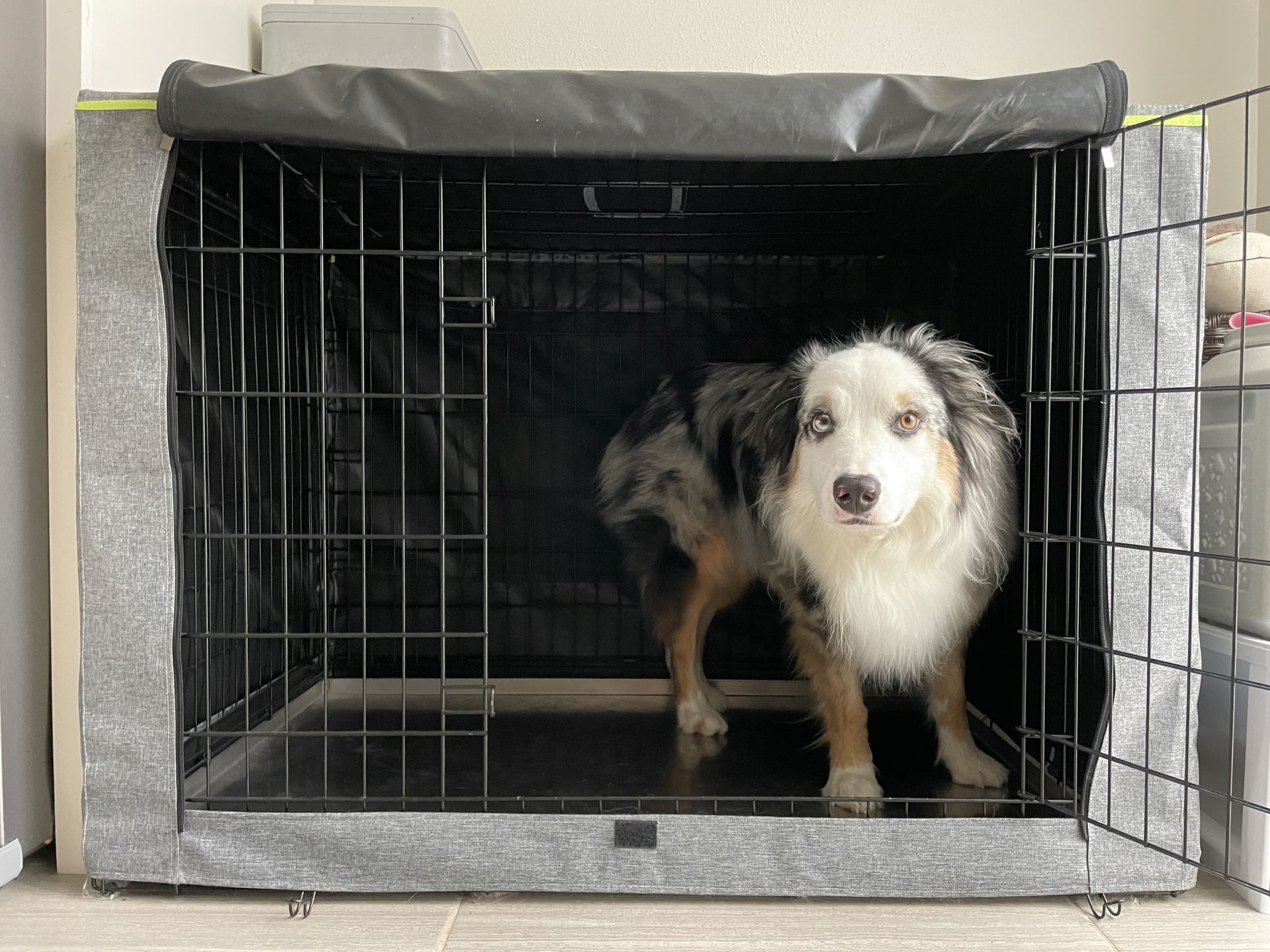 Large metal dog crate, cover, and stainless steel pan. Size for large breeds like Malamute, German Shepherd, and Golden Retriever. Plenty of room for you dog. The crate comes with a divider panel so you can separate the room into two areas for potty training. When you puppy gets older, you can remove it. The stainless steel pan was purchased separately because the pan that came with the crate is plastic. A puppy can bite the plastic pan, so it does not last long. The metal one is strong and easy to clean. The cover is also a must for training a puppy. 42 inch Crate: https://offerup.com/redirect/?o=aHR0cHM6Ly93d3cuY2hld3kuY29tL2ZyaXNjby1mb2xkLWNhcnJ5LWRvdWJsZS1kb29yL2RwLzExNjUyMQ== Stainless steel pan https://offerup.com/redirect/?o=aHR0cHM6Ly93d3cuYW1hem9uLmNvbS9kcC9CMDc4NEJIMzVHP3JlZl89cHB4X2h6c2VhcmNoX2Nvbm5fZHRfYl9mZWRfYXNpbl90aXRsZV8xJnRoPTE= 42 Inch Kennel Cover https://offerup.com/redirect/?o=aHR0cHM6Ly93d3cuYW1hem9uLmNvbS9kcC9CMDc2WjZUQlcxP3JlZl89cHB4X2h6c2VhcmNoX2Nvbm5fZHRfYl9mZWRfYXNpbl90aXRsZV8yJnRoPTE= The dog is not for sale.