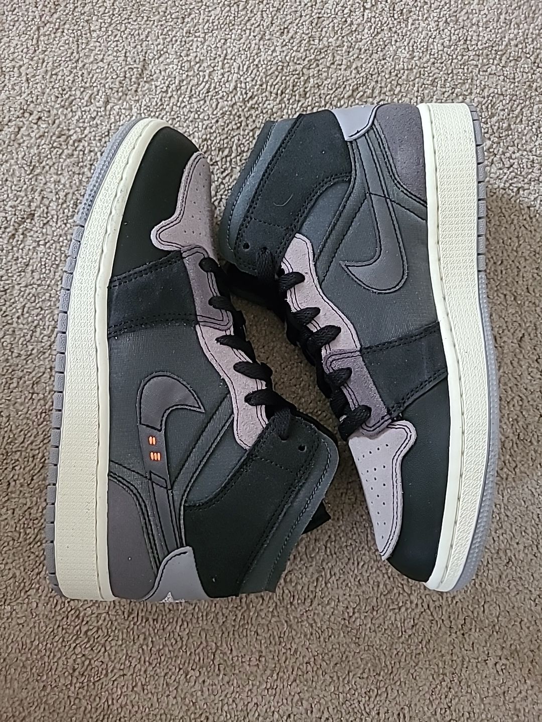 The product is a pair of Air Jordan Retro 1 Mid sneakers in a size 8.5 for women or 7 for youth. The shoes feature a mid-top design with a black colorway and belong to the Jordan product line. The style code for this specific model is DC(contact info removed), and they are athletic sneakers suitable for various activities. With the iconic Air Jordan 1 Retro Mid model and the renowned Jordan brand, these sneakers offer both style and performance for fans and collectors alike.