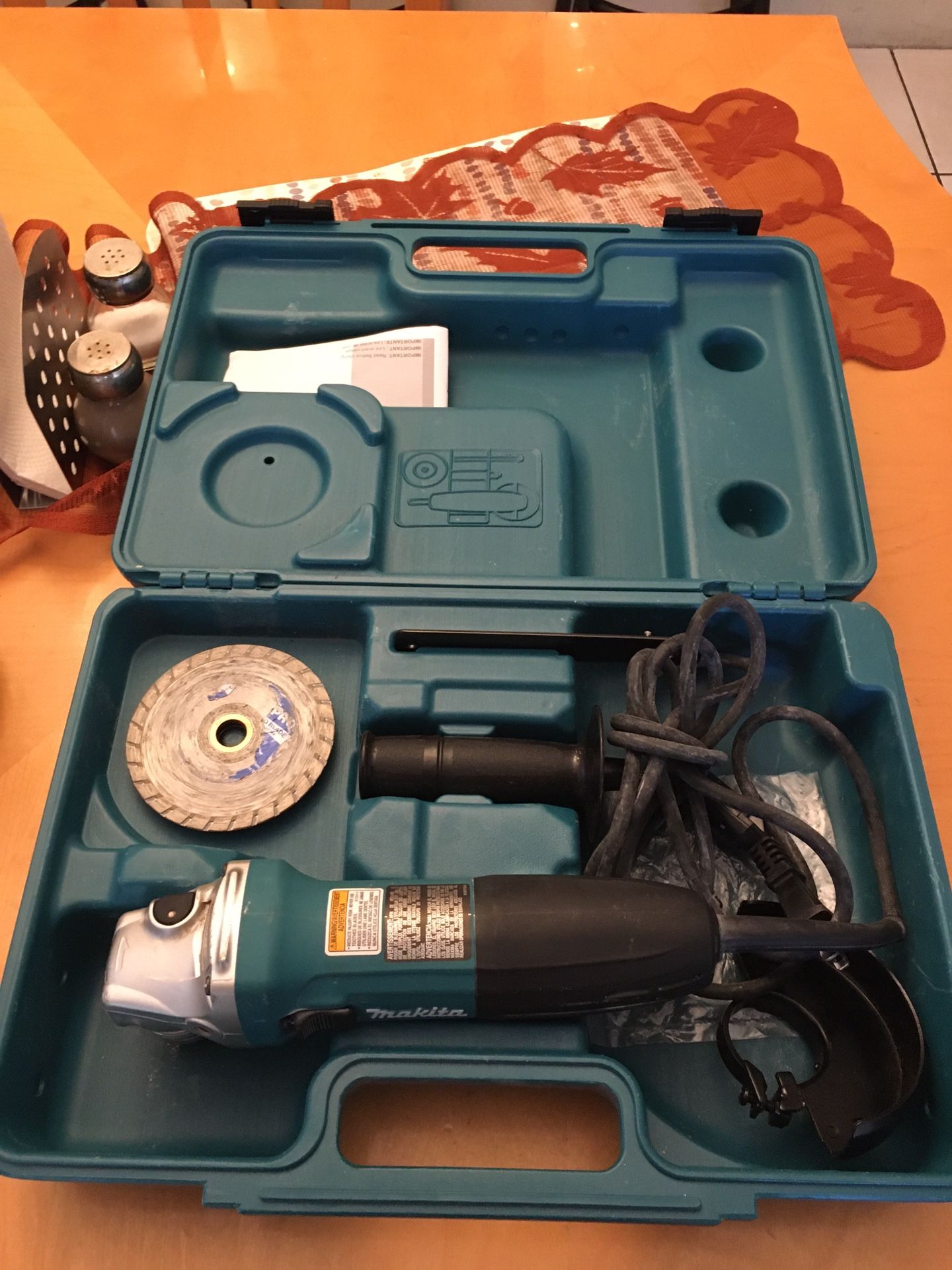 Makita Lightweight Angle Grinder 6 Amp Corded 4 in. with Grinding Wheel, Side Handle and Hard Case Excellent condition