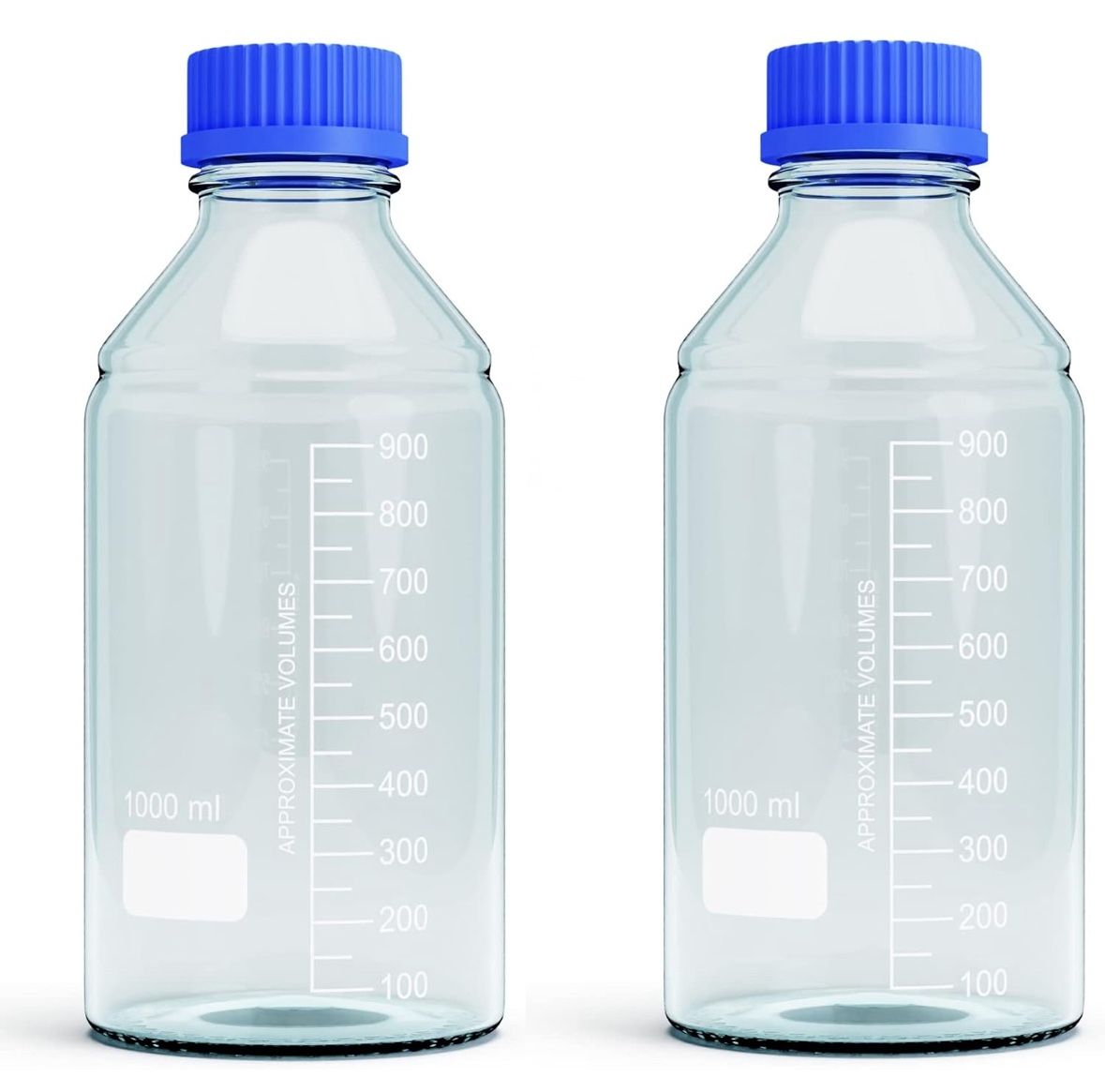 1000ml Storage Glass Bottles – 2pcs Round Media Storage Bottle – Borosilicate Glass Bottles – Safe Probe Storage Glass Storage Bottles with GL45 Blue Screw Cap (1000ml - 2pcs)