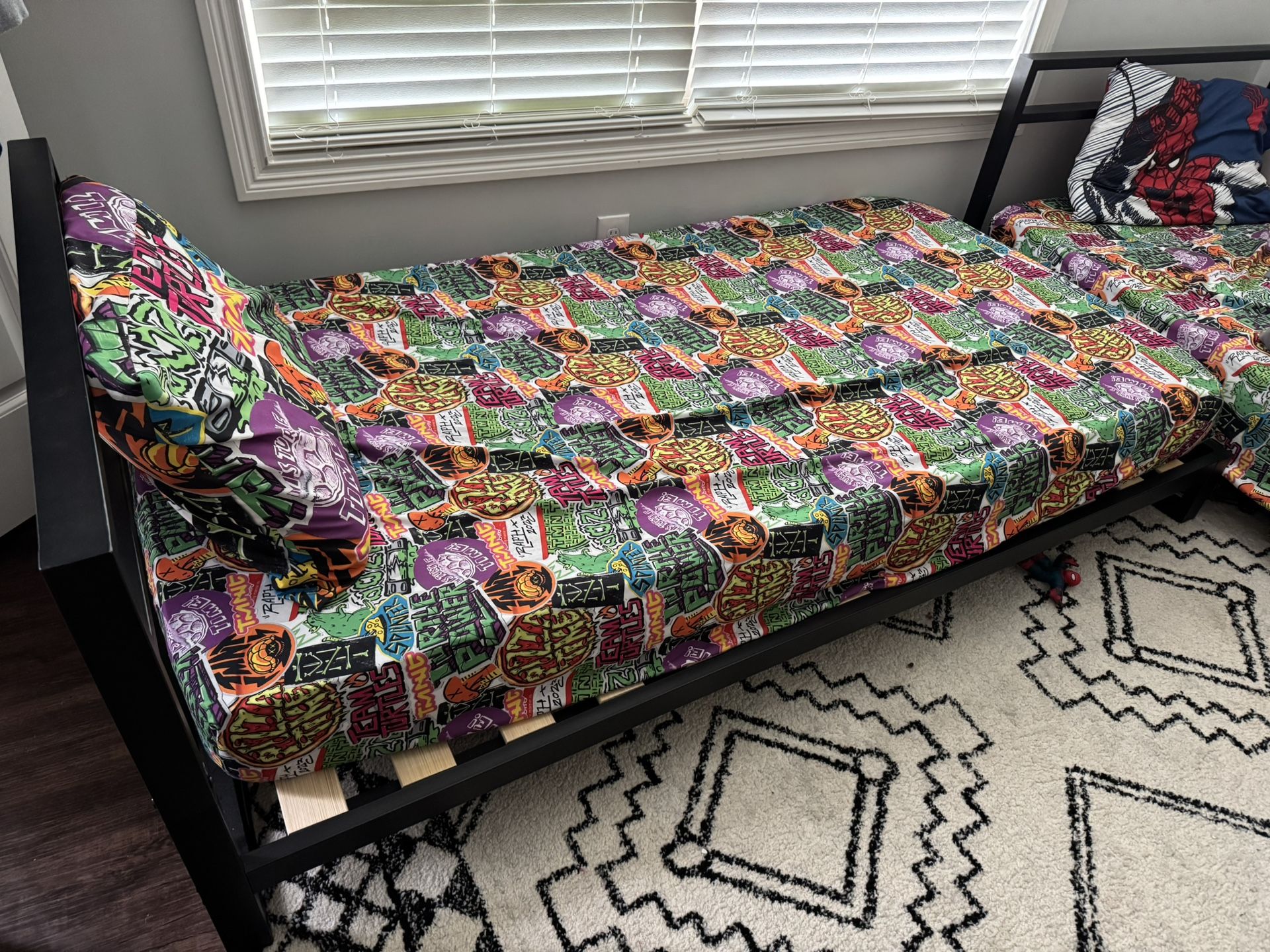 2 Twin metal bed frames, very sturdy, low to ground so perfect for small children!