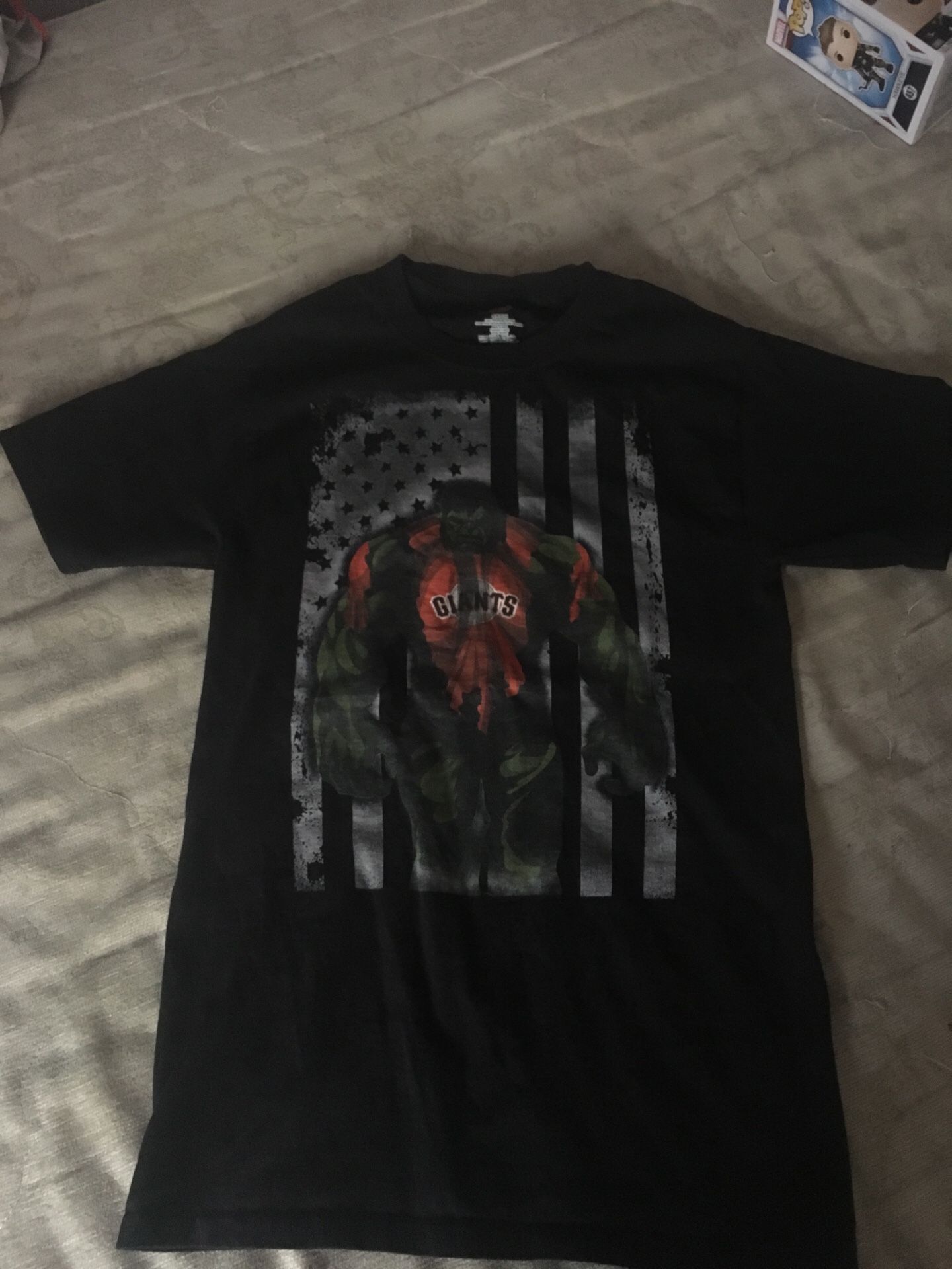 Hulk in giants jersey t shirt with a American flag in background size small never worn no holes