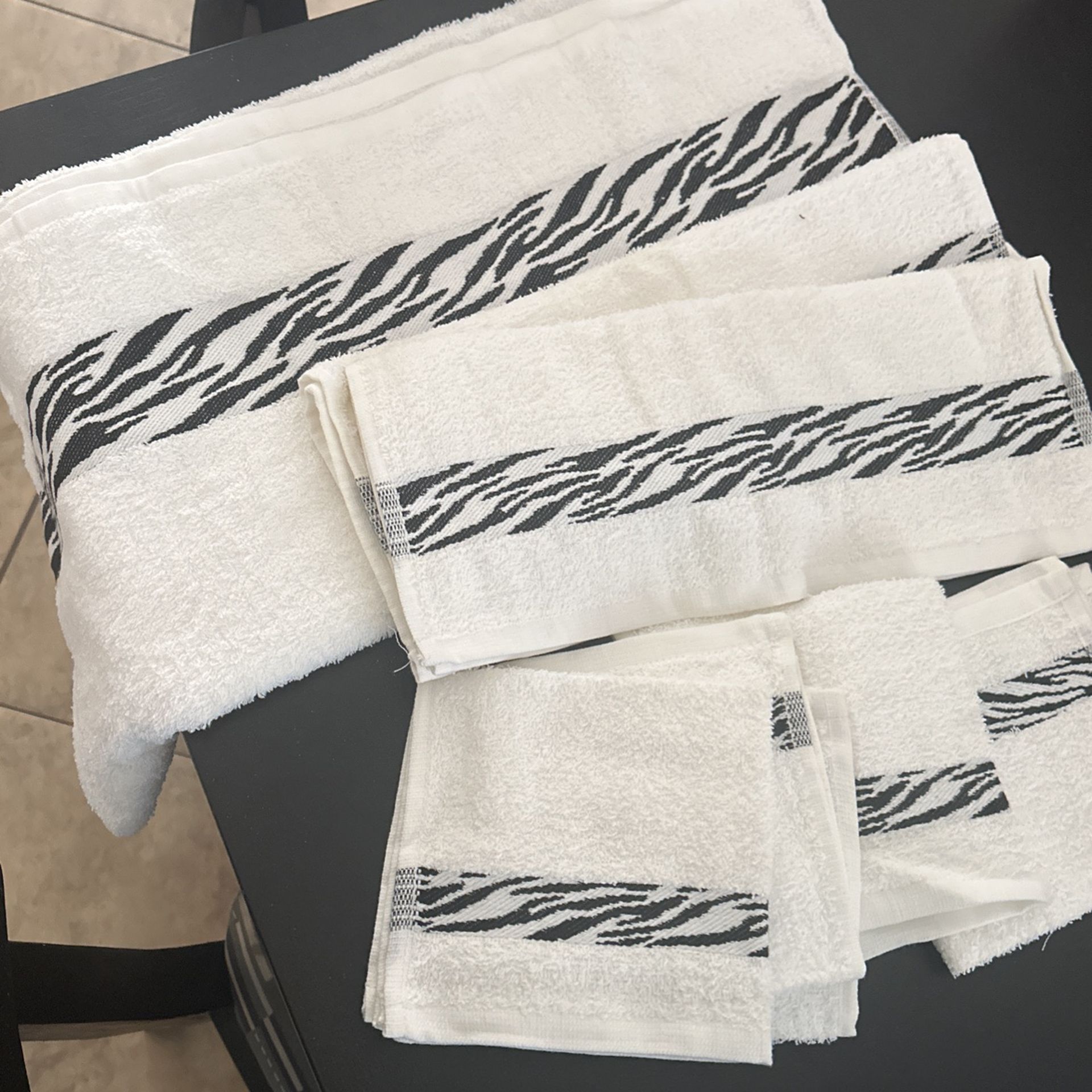 White base with Zebra print, good condition never used but without tag 4 small 2 medium 1 large