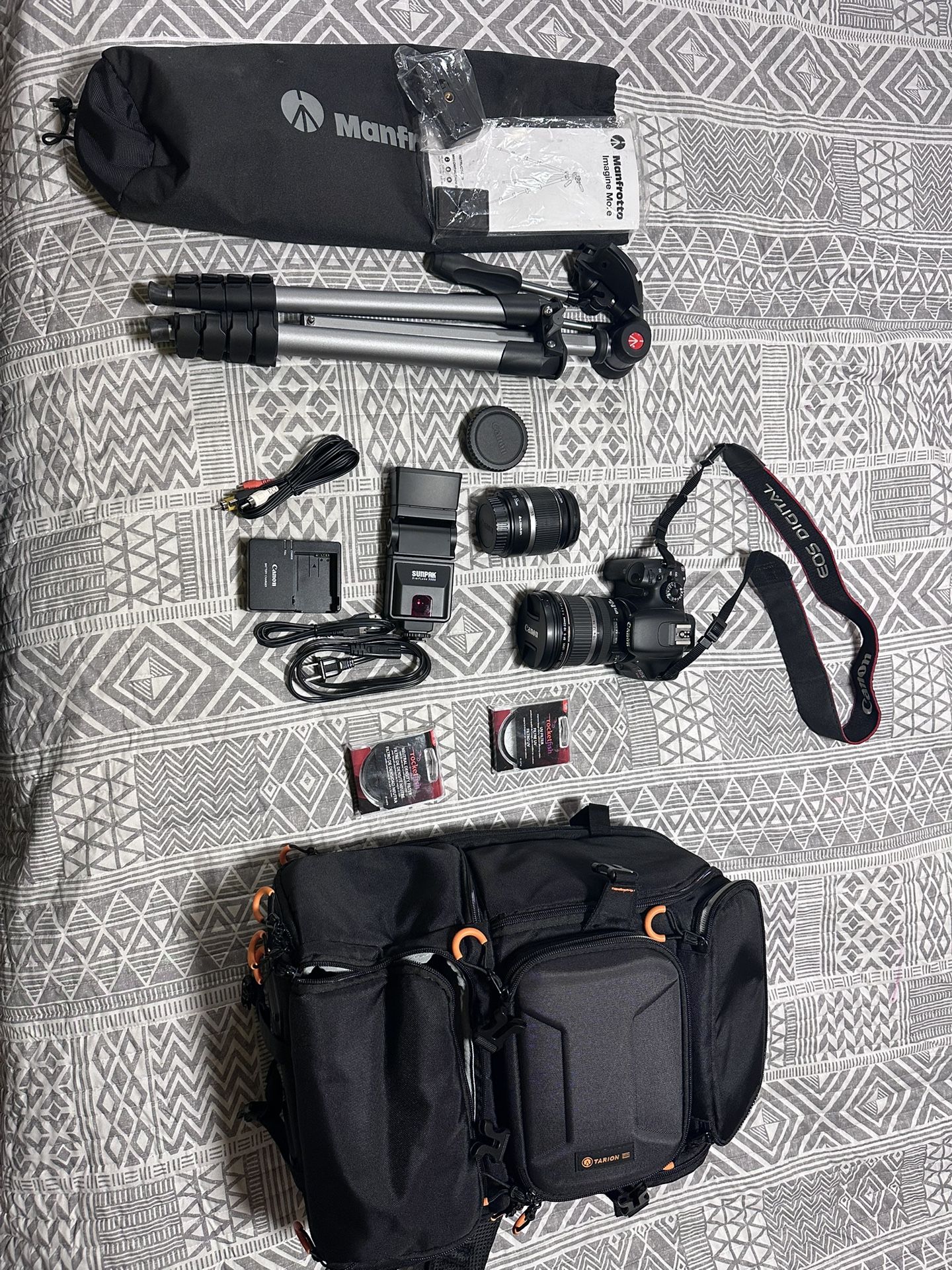 This camera is in excellent condition! The tripod is new and as well as the bag! I have two lenses, a digital flash, two lens filters for the EFS 18-55 mm lens . The second lens is EFS 10-22mm. Comes with battery charger and cables to connect to desktop. I don’t want to sell it but I hardly use it and it’s just taking up space. This camera should go to someone who will put it to use. Don’t be cheap, the price would be way higher on a website or pawn shop.