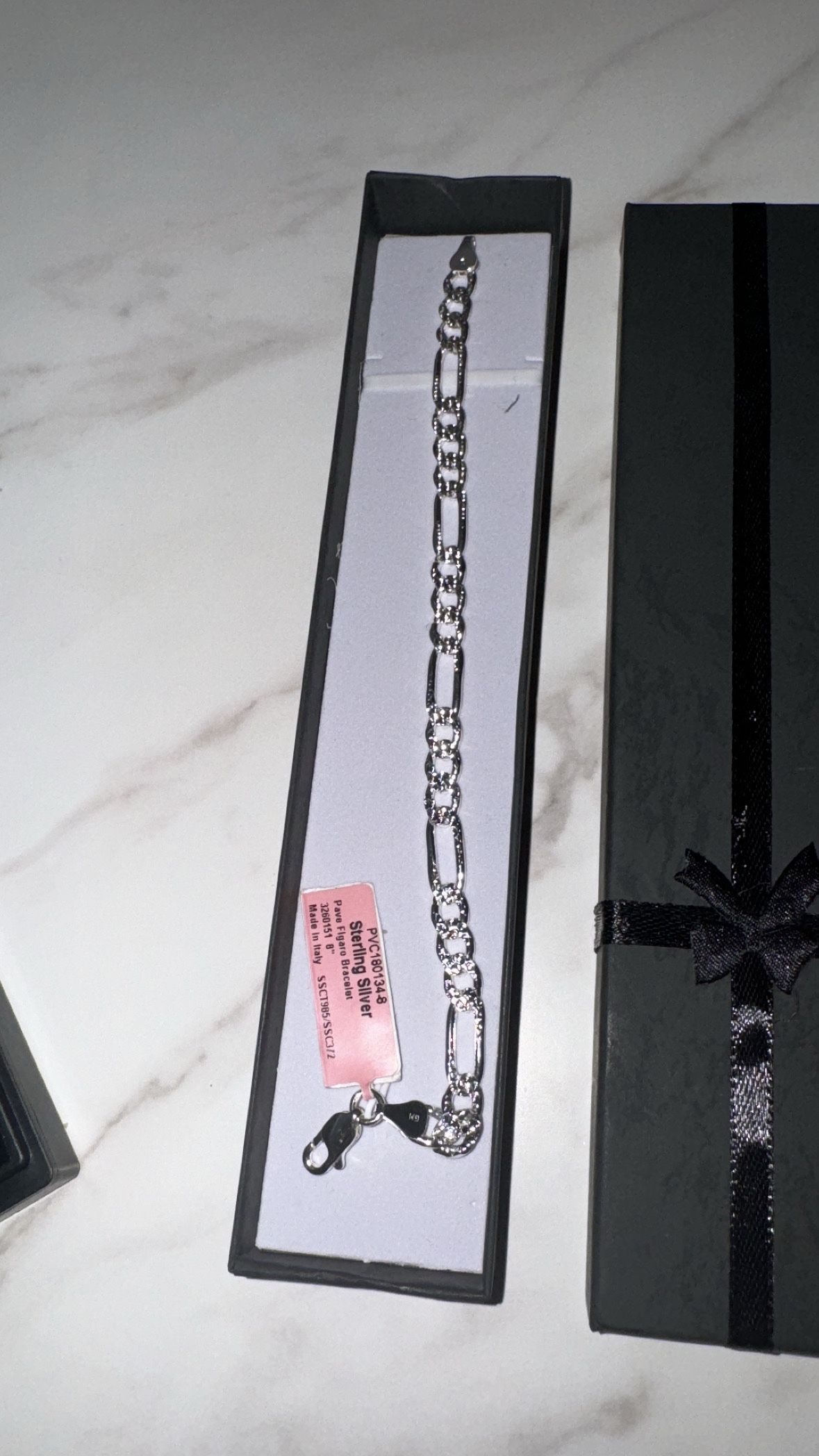 SOLID SILVER FIGARO BRACELET 7.5mm 8”