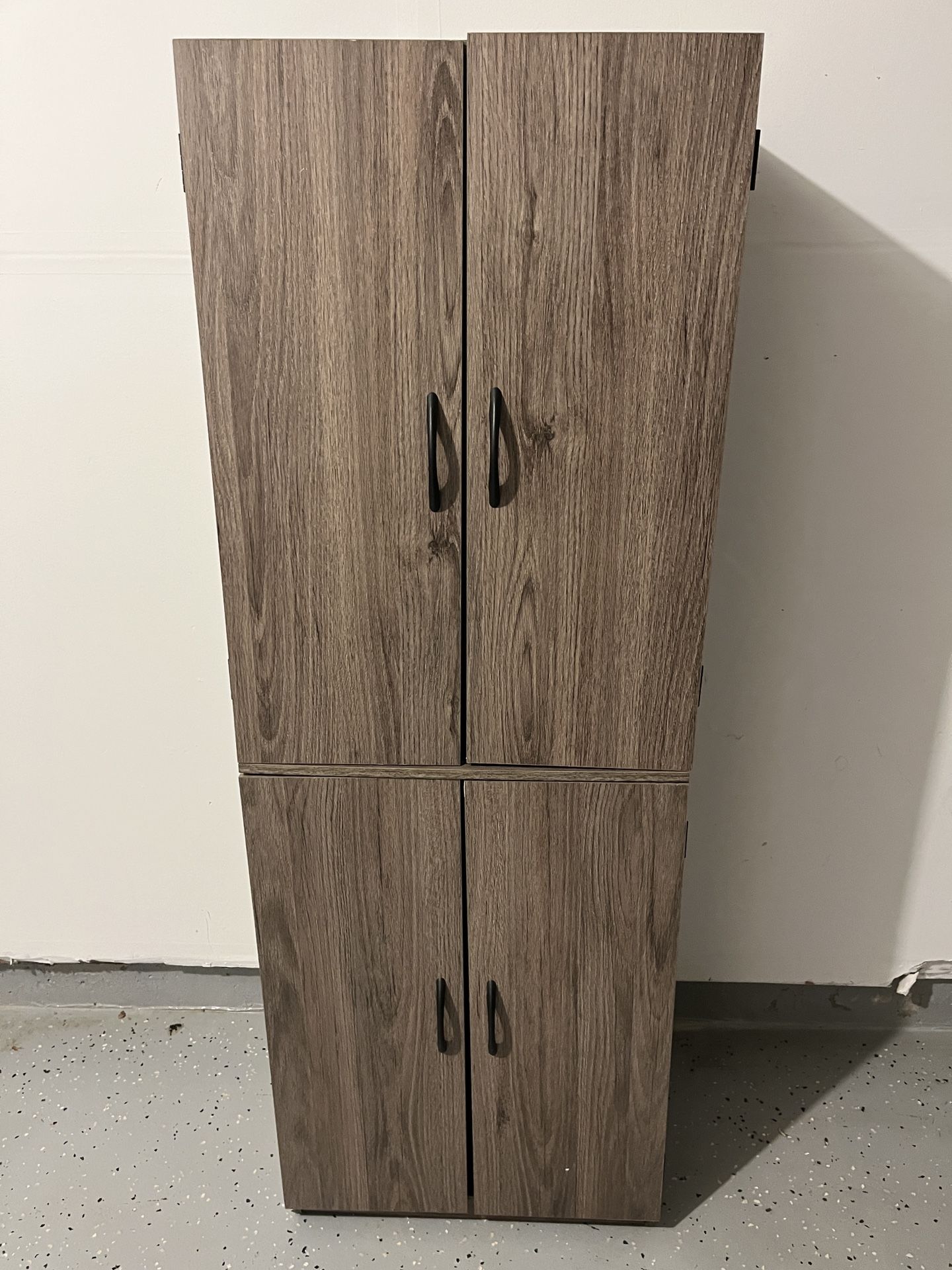 4-Door Storage Cabinet, ideal for use in laundry rooms, kitchens, garages. Adjustable shelves. Dimensions are 23.5”Wx 15.37”Dx71.97”H