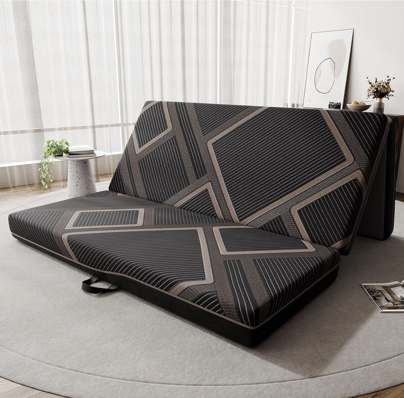 Trifold Mattress Queen Size - 4 Inch Foldable Memory Foam Mattress, Washable Cover and Non-Slip Design, Portable Folding Floor Guest Bed Camping RV Tr