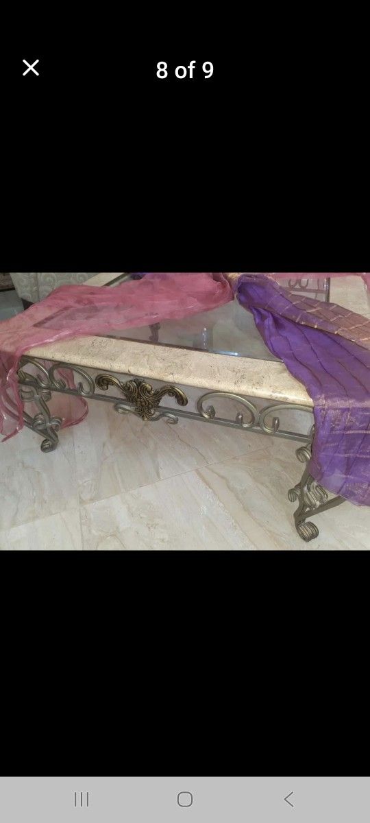 Coffee Table 36 X 36 Stone Metal Glass Top
