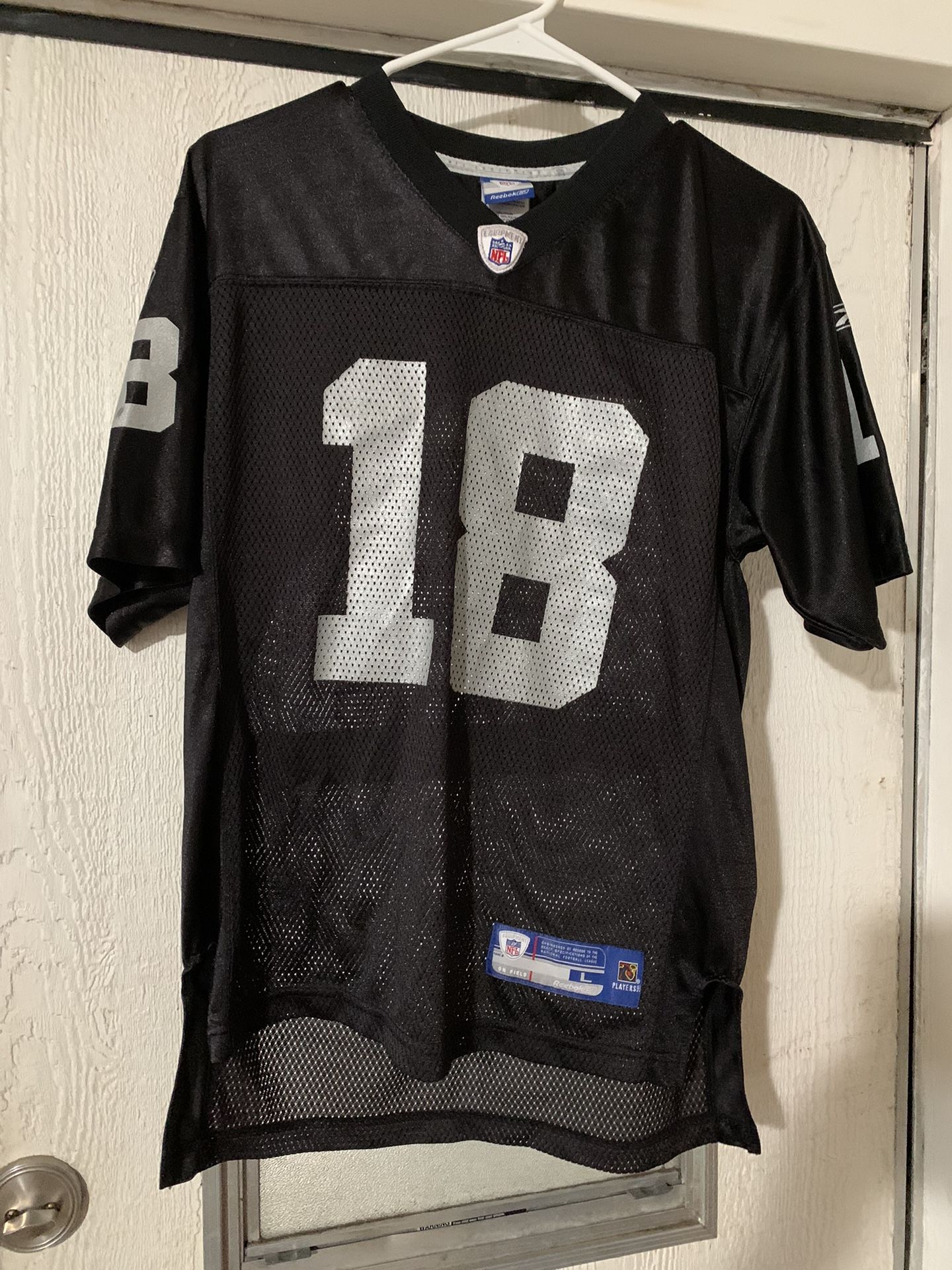 Randy moss Oakland Raiders NFL jersey #18 black size L (14-16)